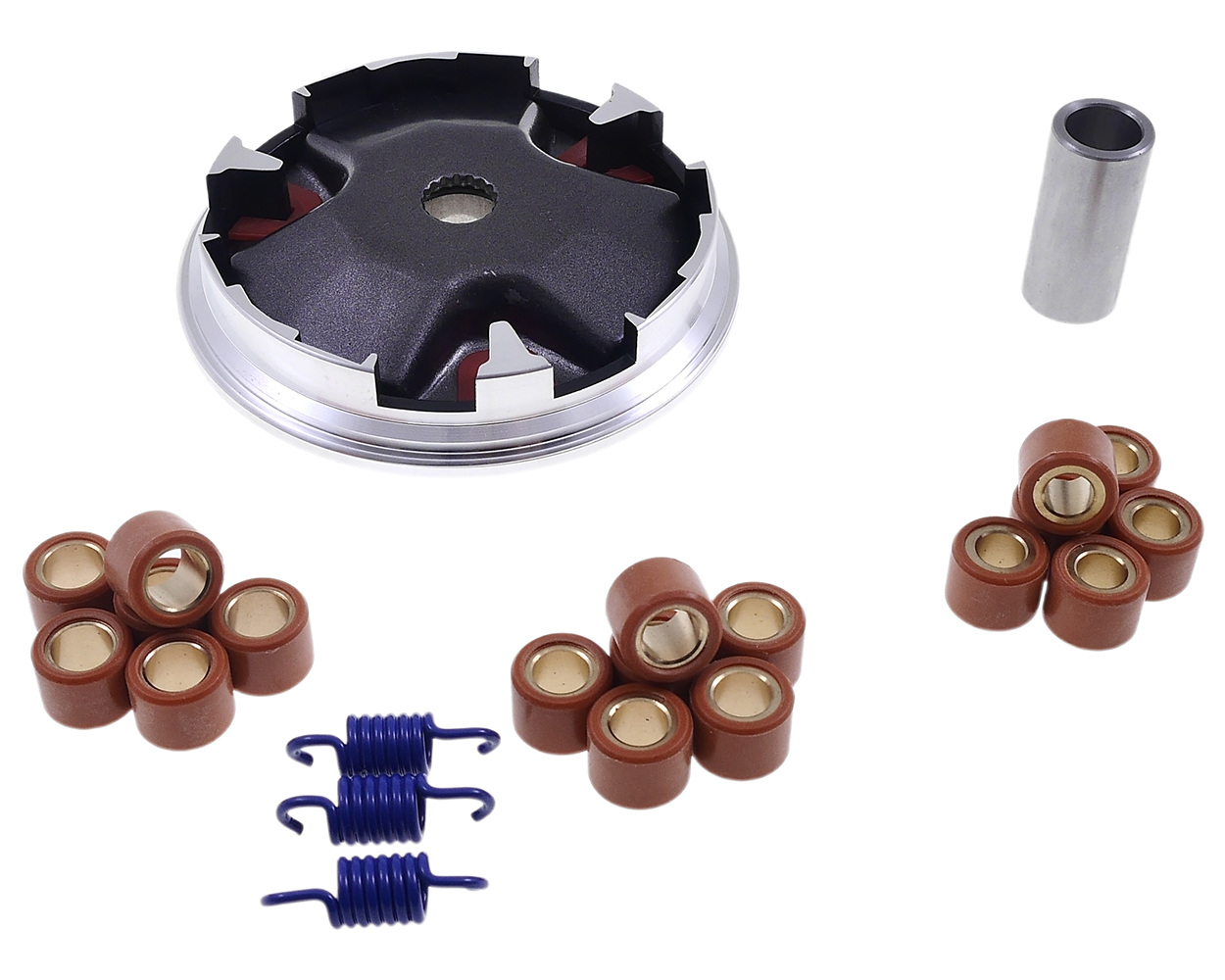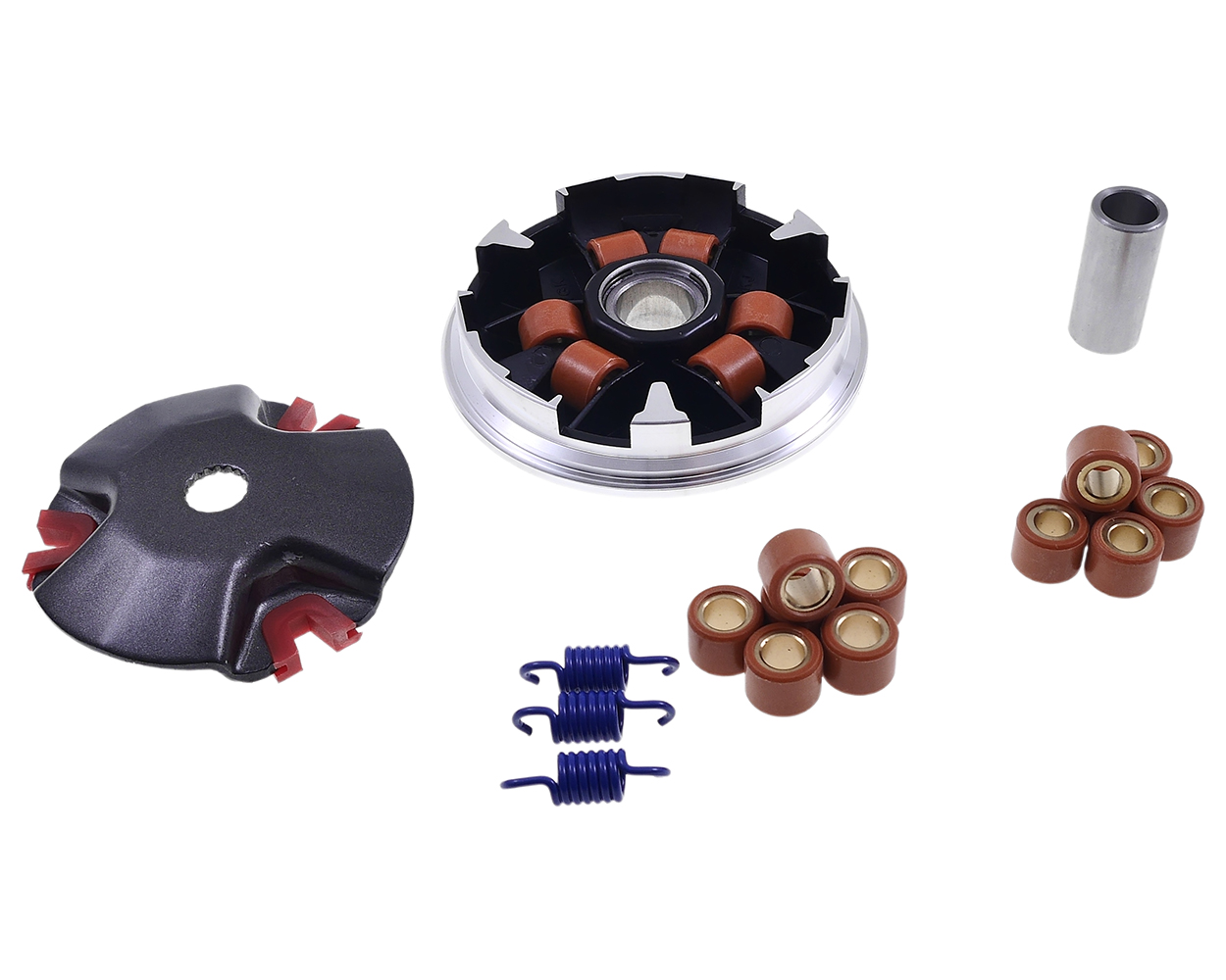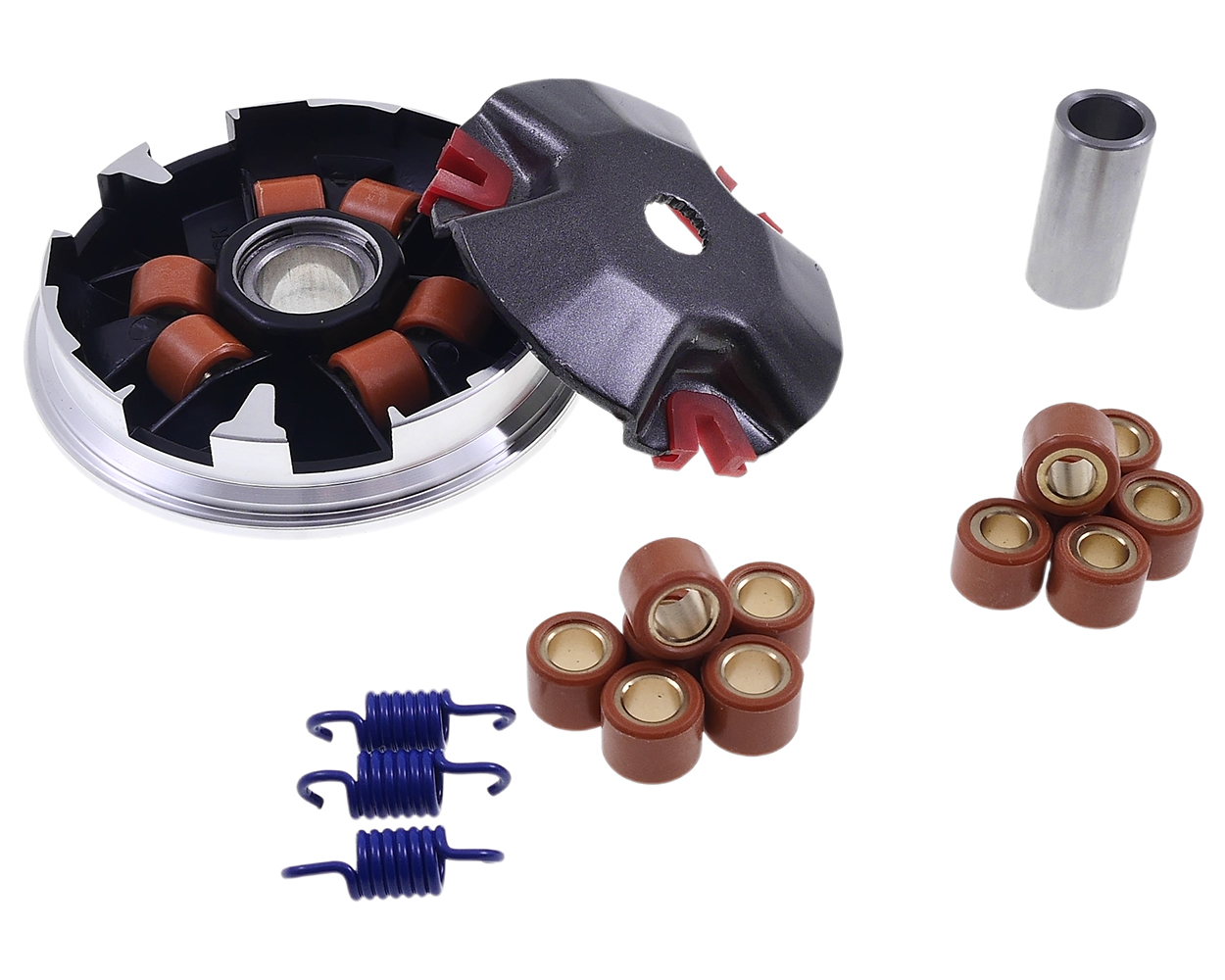 Technische Details:- Laufbahnen neu berechnet für optimale Performance- Inklusive Kupplungsfedern zur Anpassung der Einkupplungsdrehzahl- Variomatikrollen: 15x12 in 6g, 7g, 8g