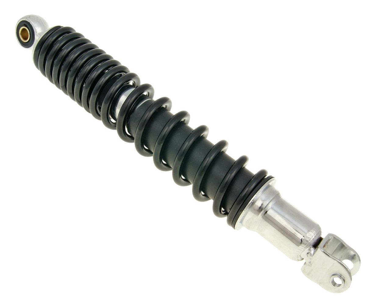 Federbein für 125/150ccm 4-Takt Roller aus China mit Mono-Federbein. Das Federbein wird verchromt, mit schwarzer Feder geliefert und ist nicht einstellbar. Die Länge von Stoßdämpferauge oben zu unten beträgt 335mm. Bitte die Länge des benötigten Stoßdämpfers am Fahrzeug vergleichen, um Fehler bei der Bestellung zu vermeiden.