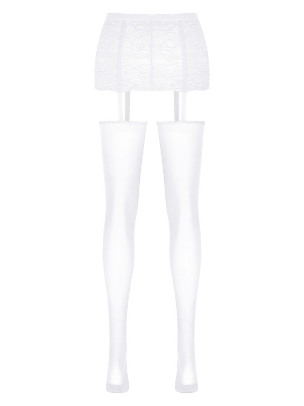 Semi see through lace mini skirt for women, comfy elastic waistband, designed with stockings.