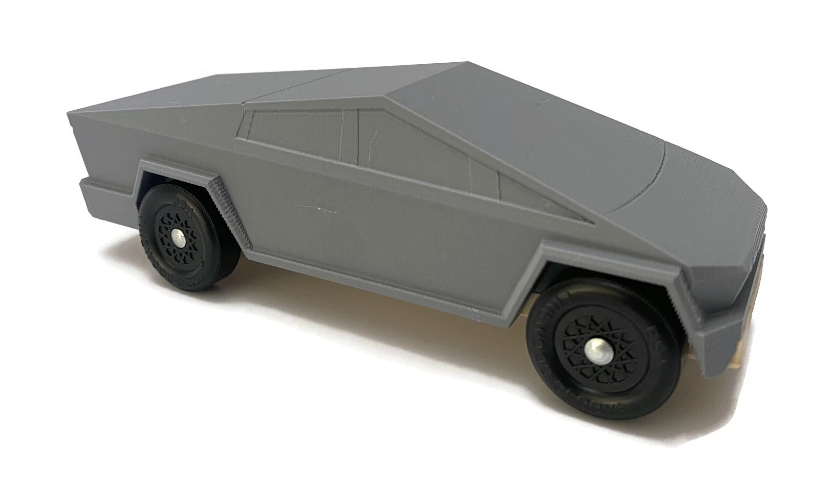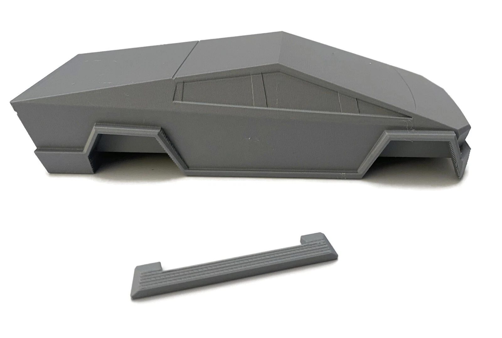 This design is offered in Grey. We do not paint bodies. All prints will be shipped “raw” and require finishing by the buyer. This is a 3D printed item. The process introduces small variations in the surface of the object that makes each one special and unique. You will need to finish the look. Some surfaces require "supports" during the printing processes. These will show up on the surface as rough texture. We do our best to minimize these structures, however it is impossible to not use them. We do our best to keep the structures limited to underneath the car body for best possible finish. Use wood putty/body filler to mask them if you desire.