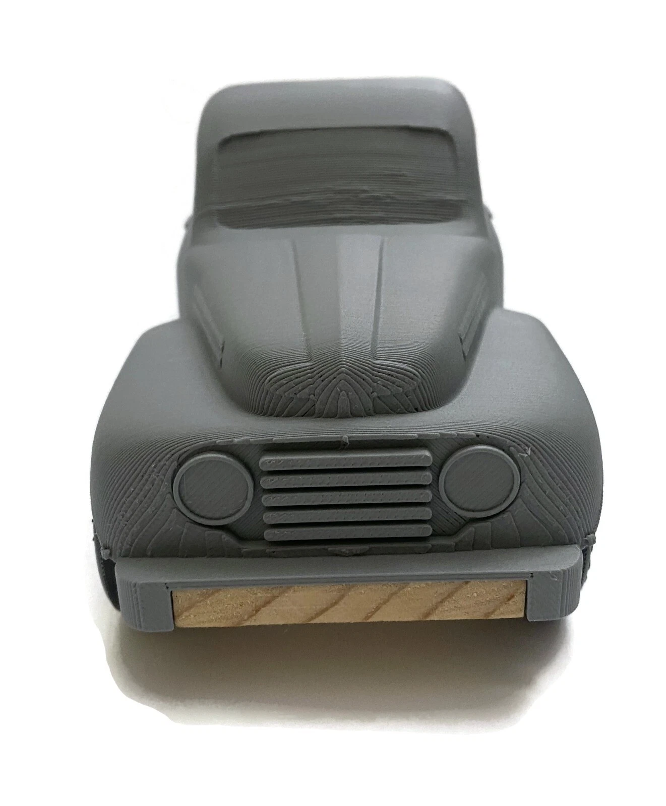 This design is offered in Pink or Grey. We do not paint bodies. All prints will be shipped “raw” and require finishing by the buyer. This is a 3D printed item. The process introduces small variations in the surface of the object that makes each one special and unique. You will need to finish the look. Some surfaces require "supports" during the printing processes. These will show up on the surface as rough texture. We do our best to minimize these structures, however it is impossible to not use them. We do our best to keep the structures limited to underneath the car body for best possible finish. Use wood putty/body filler to mask them if you desire.