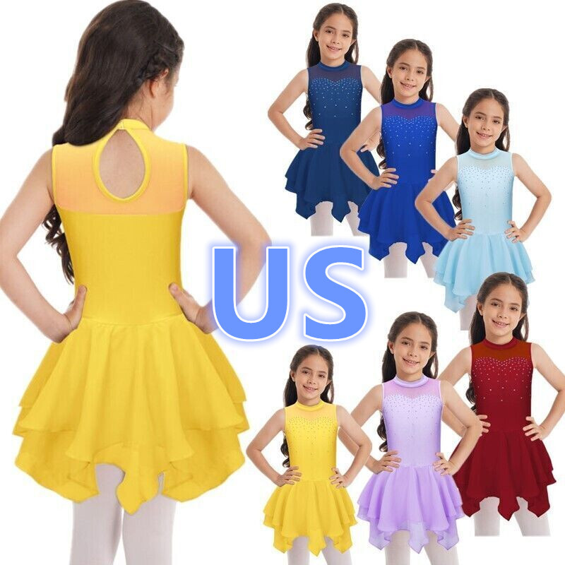 Decorated with sequined bow knot, golden block patchwork around hem of each layer, making girl very beautiful.