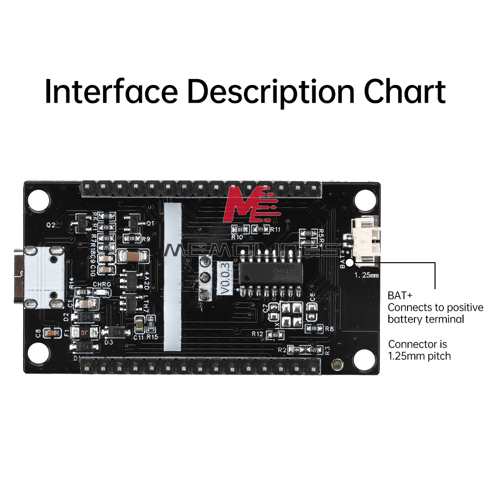 3. Easy to use, the module can also be connected to the 3.7V lithium battery to continue to run offline after the completion of programming and development.