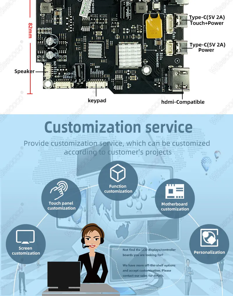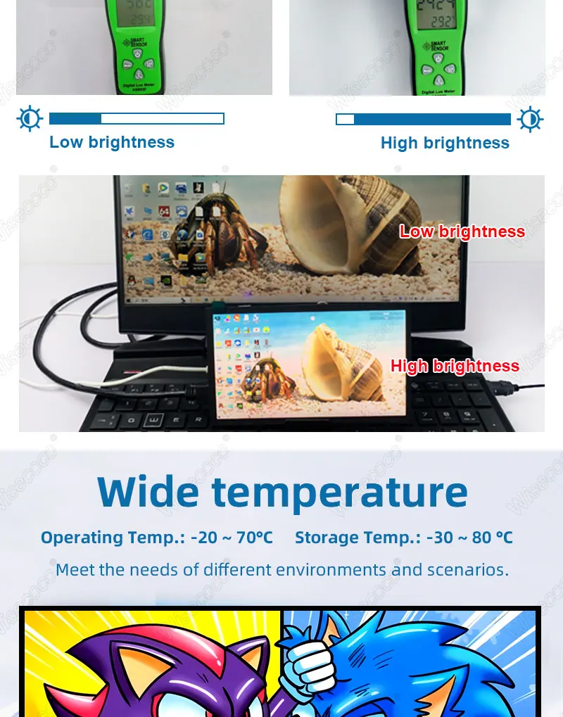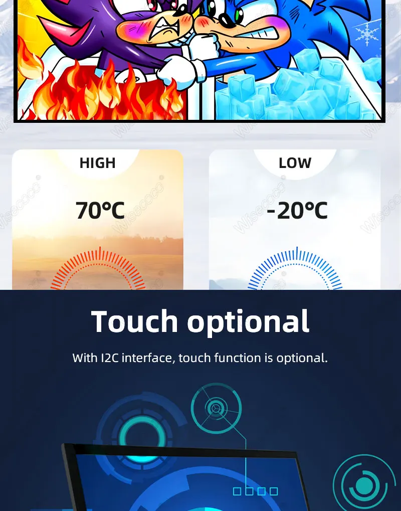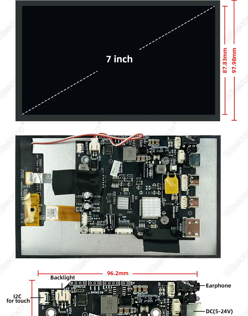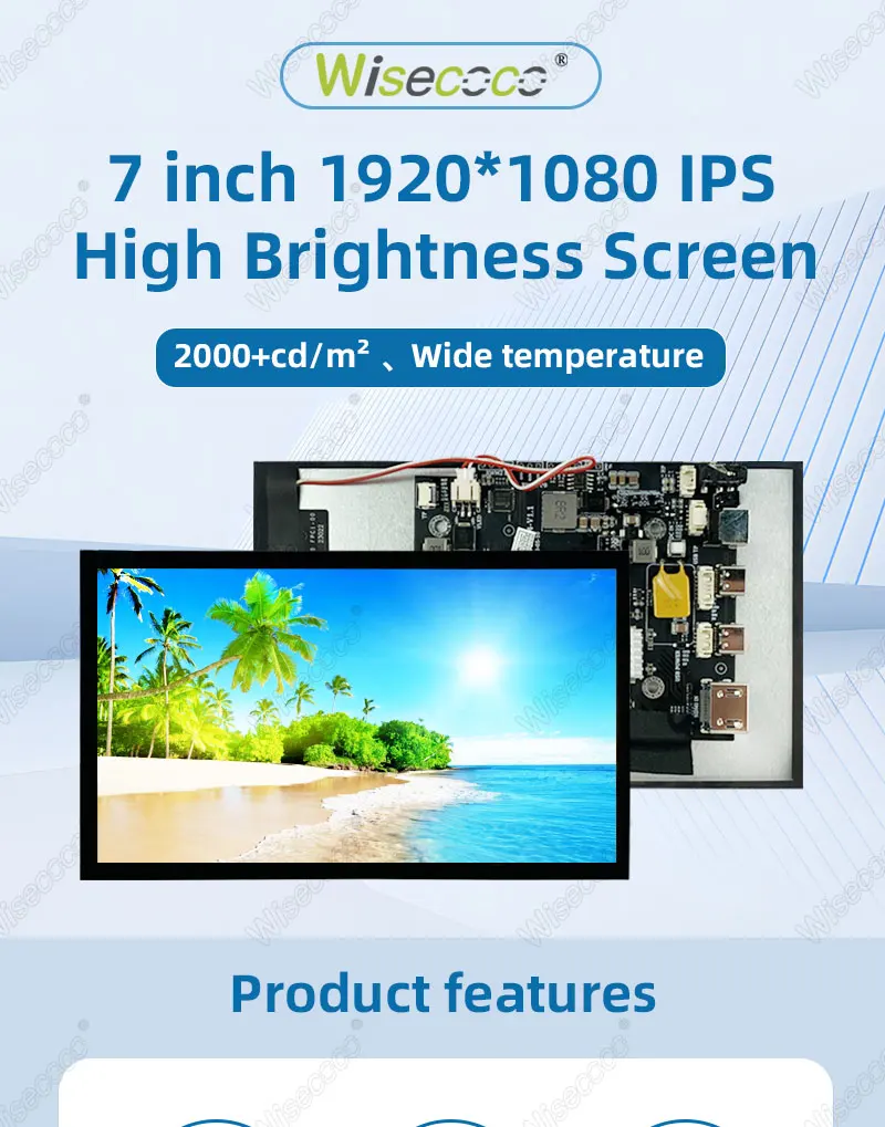 Wisecoco 7 Inch Sunlight Readable Display IPS 2400Nits High Brightness TFT LCD Module Touchscreen Outdoor Industrial Automotive