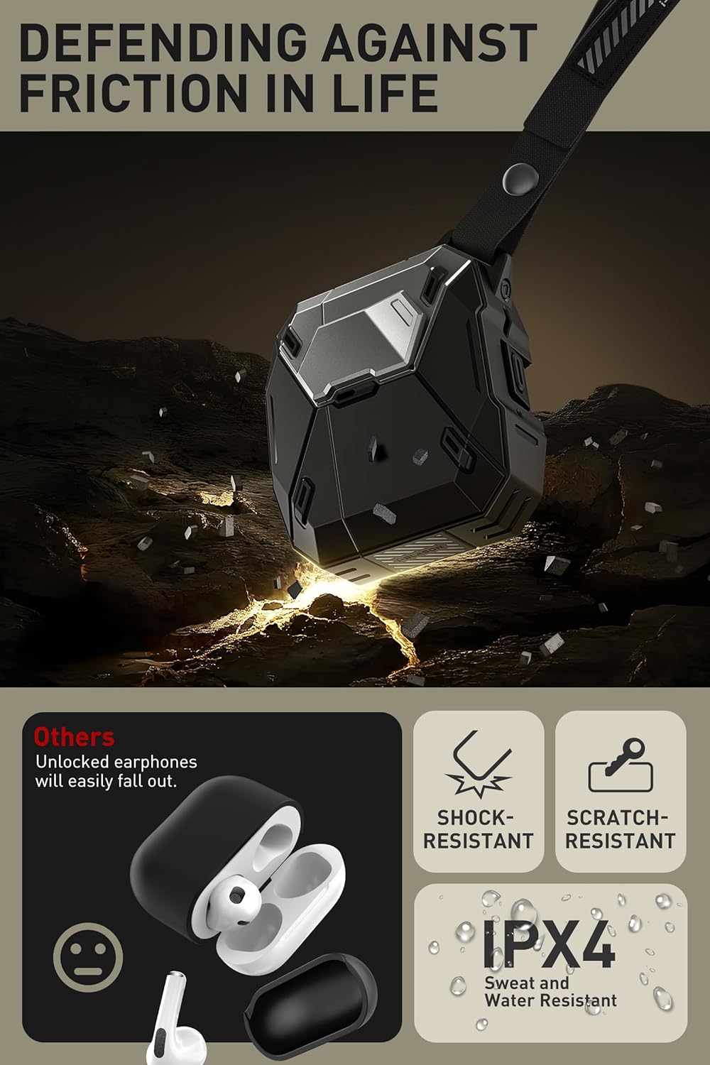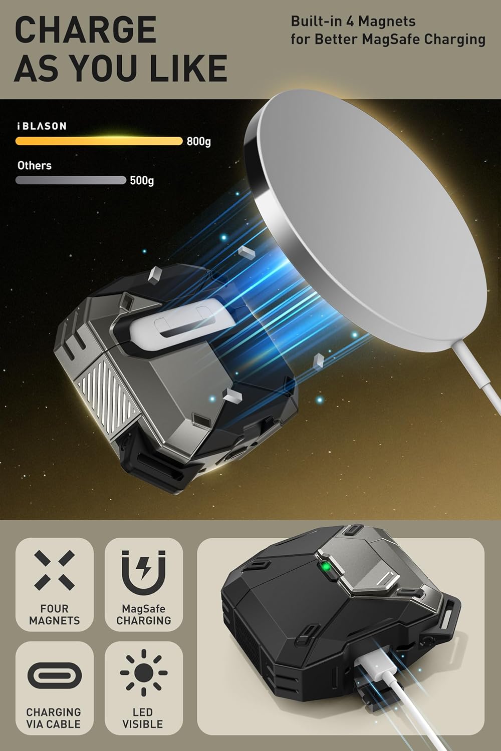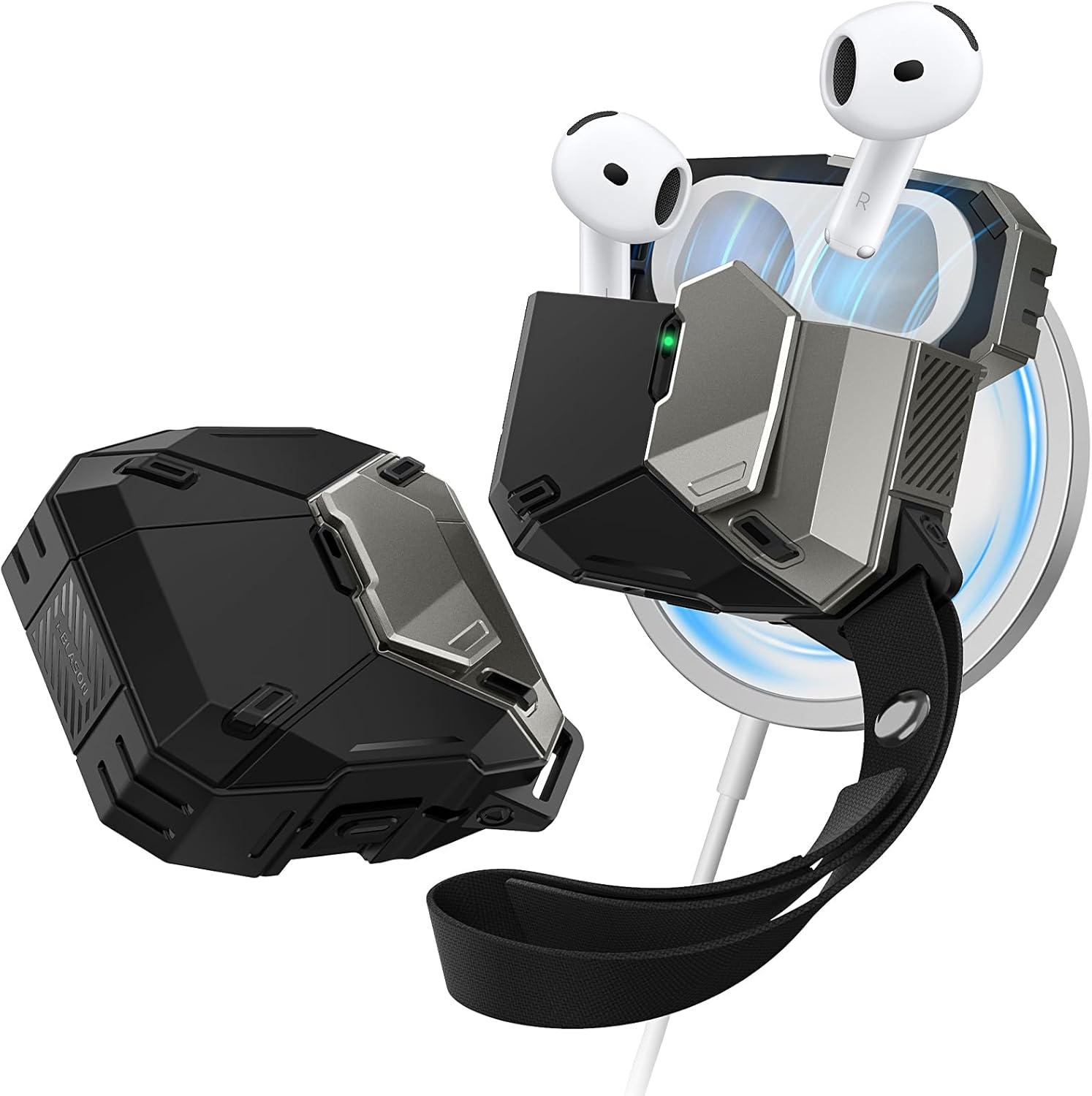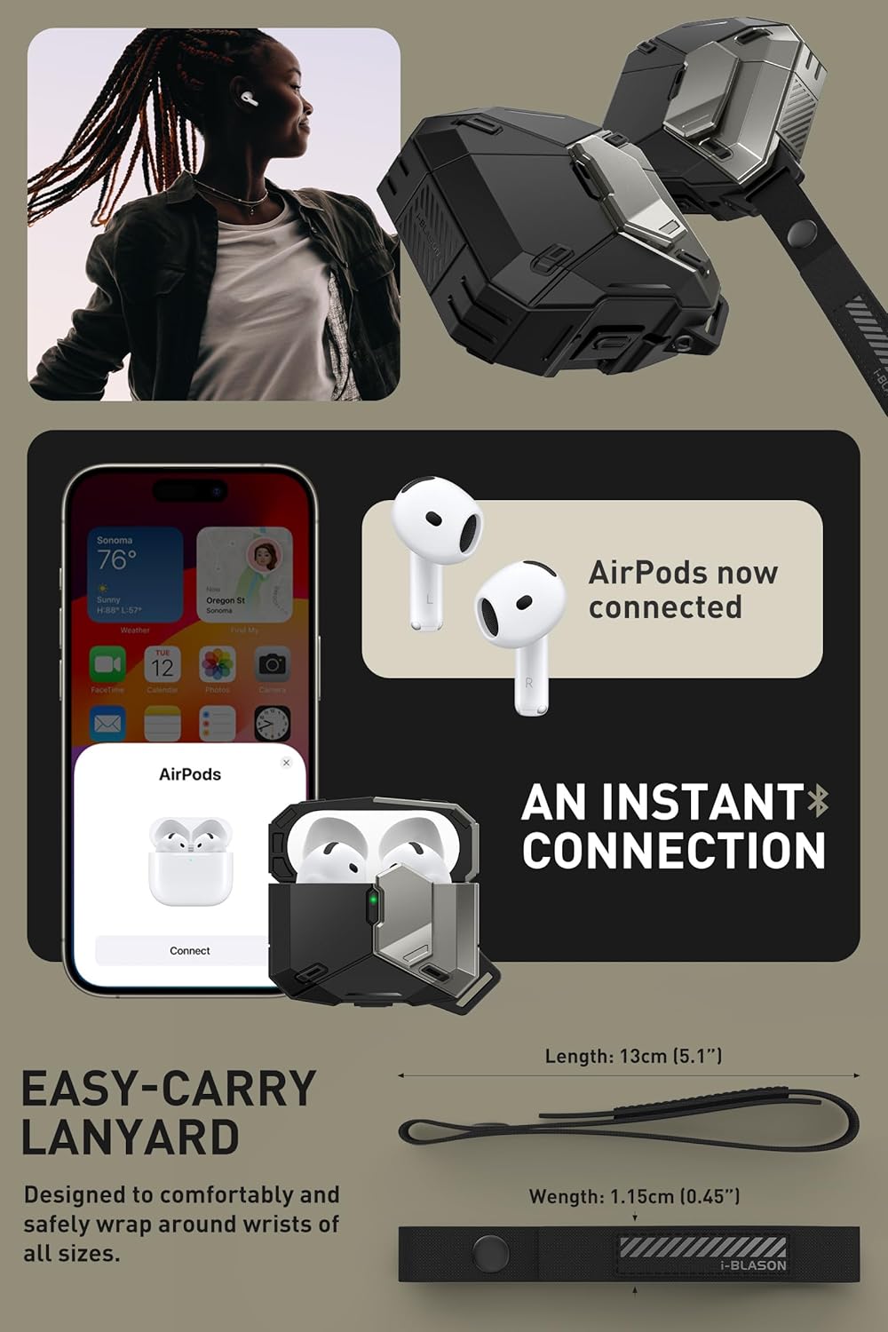 i-Blason for Apple AirPods 4 Case Cover MagSafe, [Magnetic Automatic Lock] [MagSafe Wireless Charging], Military Protective Case with Lanyard for AirPods 4th Generation, Matrix Series (Black)