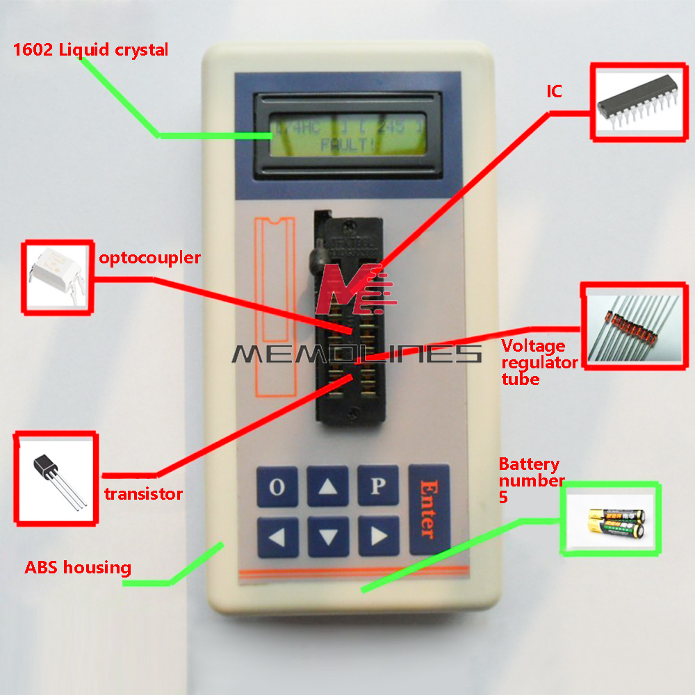 Is a multi-functional maintenance tester designed specifically for front-line maintenance personnel, can choose different test modes 5v mode, 3.3v mode, automatic mode, etc. can test 74ch series, 74ls series, osmo series, CD4000 series, HEF400 series, 4500 series, operational amplifiers, interface class chips, optocouplers, transistors automatic identification, voltage regulator tube voltage value Identification, etc.