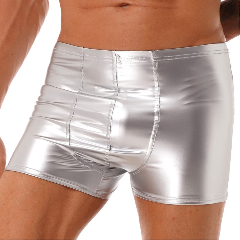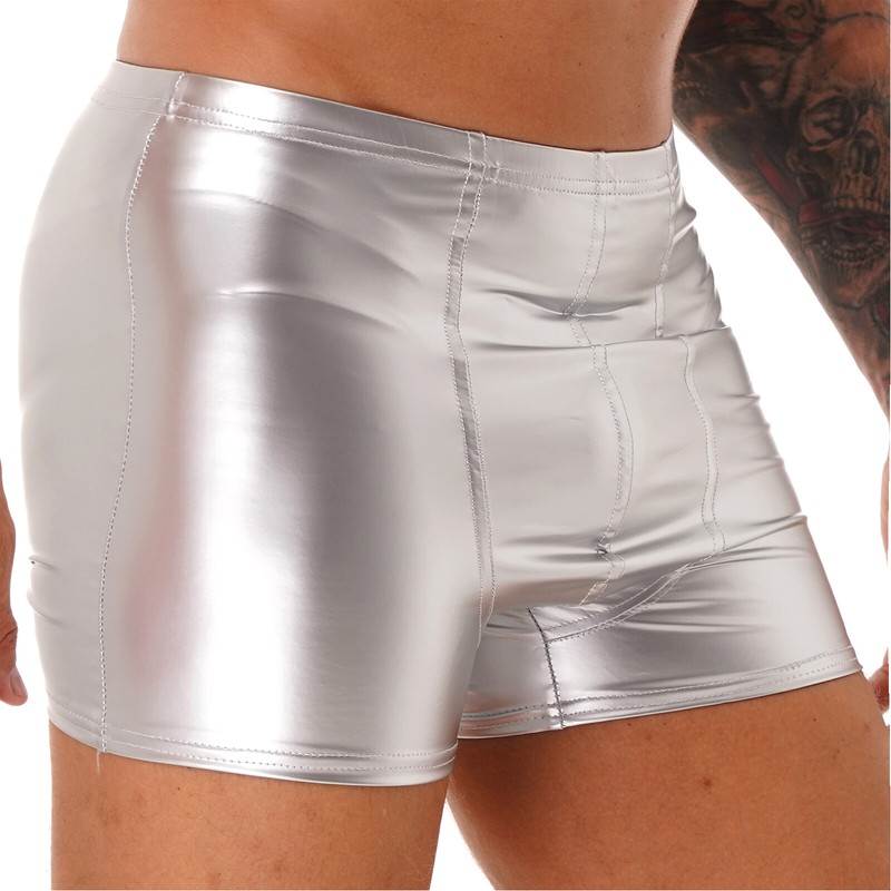 Mens Wet Look Patent Leather Shorts Bulge Pouch Boxer Brief Clubwear.
