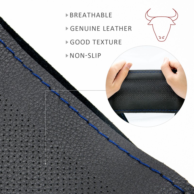 DIY Hand Sewing Genuine Leather Punched Breathable Steering Wheel Cover with Needle and Thread