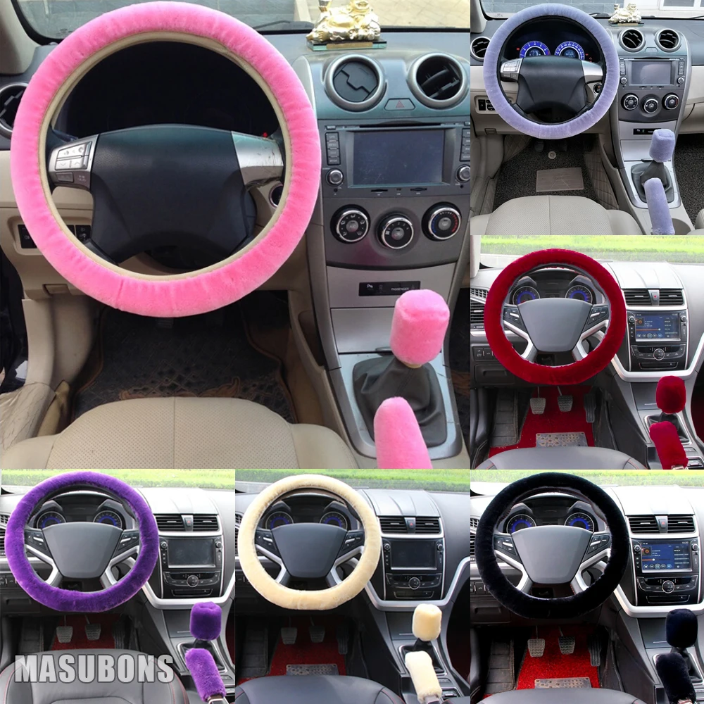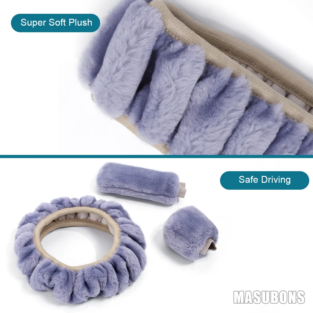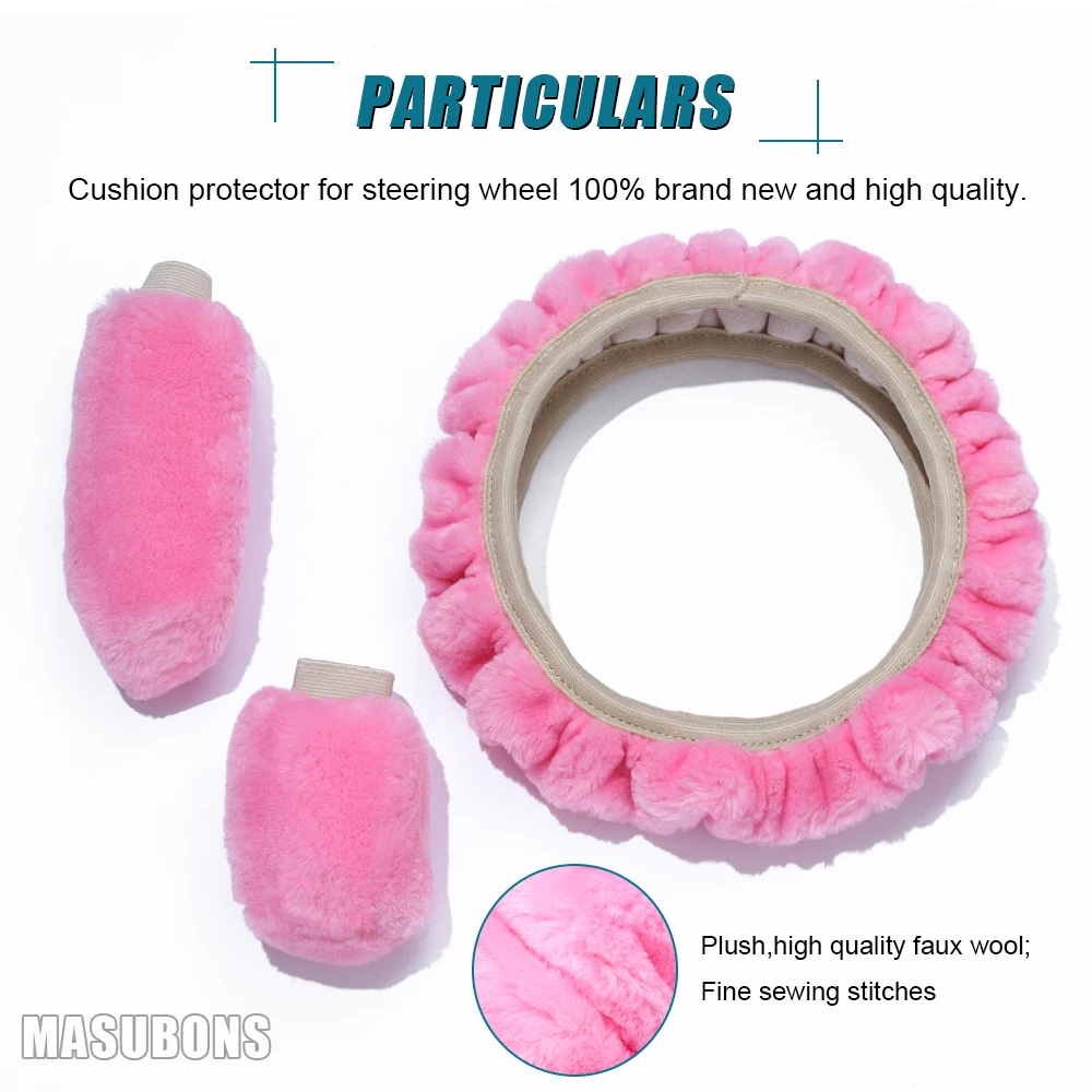 ⑤ Paketliste: 1 * Flauschige Lenkradabdeckung/1*Schalthebelabdeckung/1*Handbremsabdeckung (Farbe ist optional)