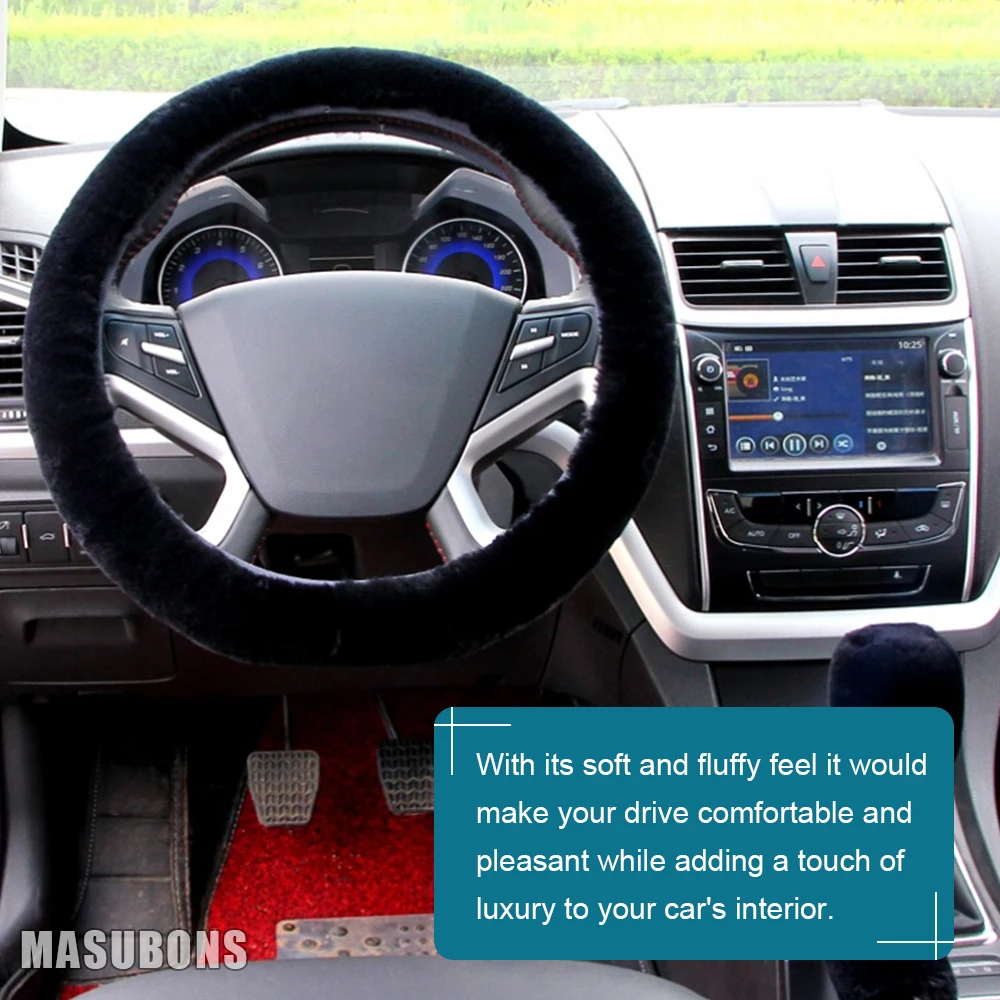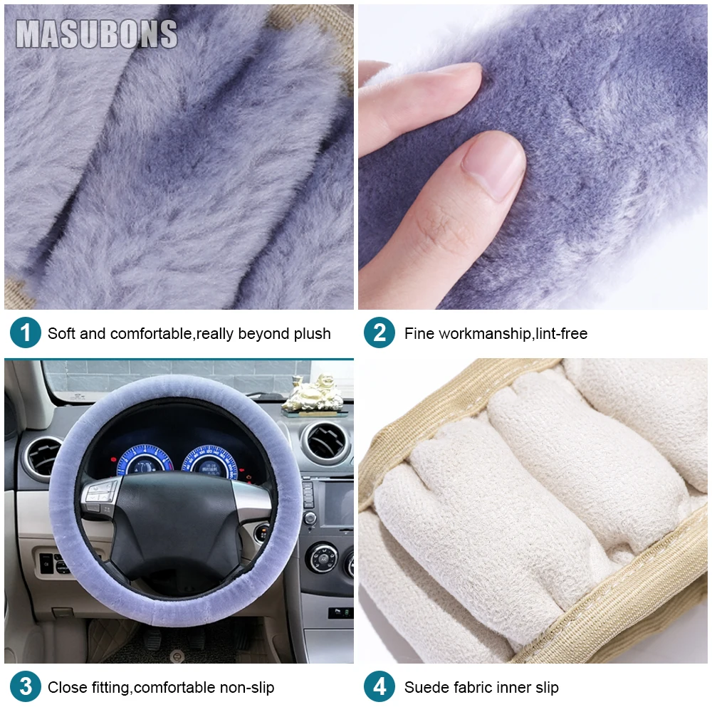 ✿ Hochwertiges Material: Die Fuzzy-Lenkradabdeckung ist aus hochwertiger Kunstwolle, weich und bequem, rutschfest und schweißabsorbierend, während sie das Lenkrad schützt, kann sie Ihre Hände im Winter warm halten.