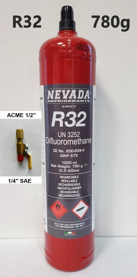 Kältemittel R32 (Difluoromethan – CH2F2) Füllgewicht 1800g 2,3L