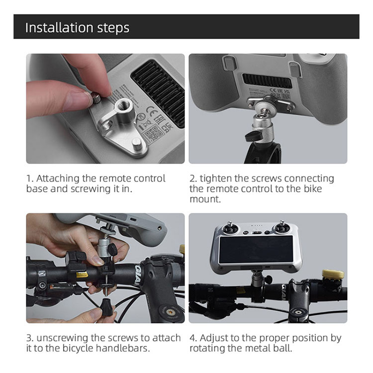 l When riding in the wild, you can fix the RC remote control with screen on the handlebars, and control the remote control while riding,