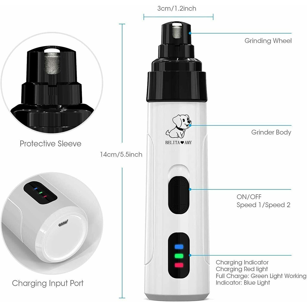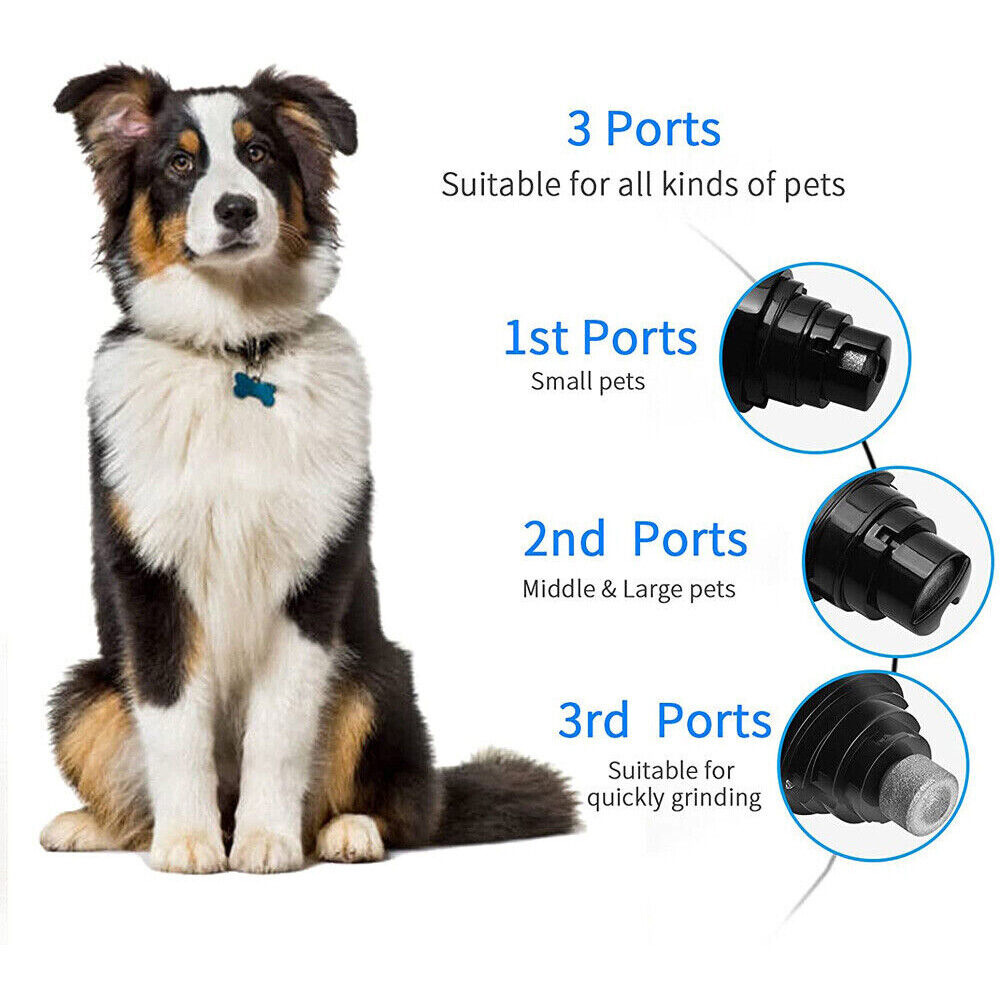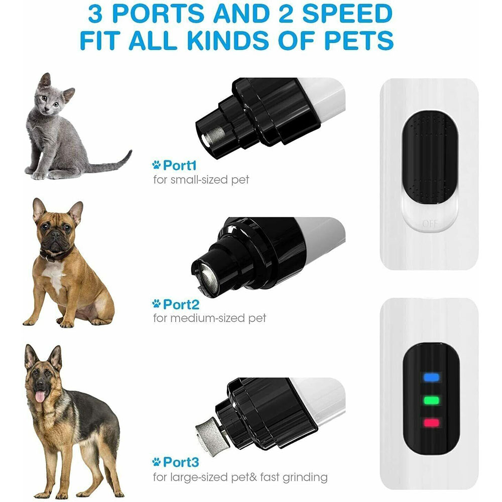 Haustier-Nageltrimmer hat 3 Ports Größe in der Mühle Bereich, befriedigend Bedürfnisse für Haustiere "verschiedene Pfoten; Sie können geeignete Geschwindigkeit nach der Härte der Nägel Haustier wählen, sorgen für sichere und schnelle Schleifen für Ihre geliebten Haustiere.