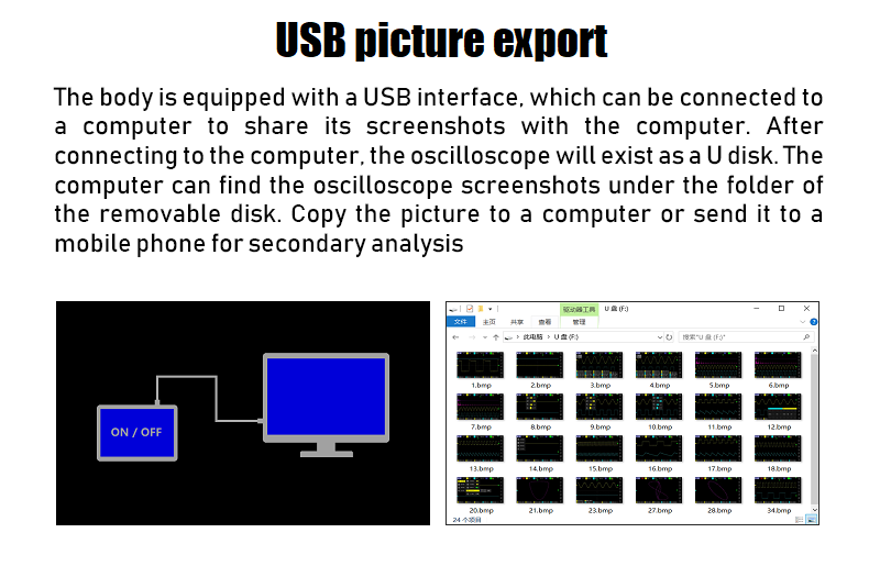 14.Equipped with a USB interface, which can be connected to a computer to share its screenshots with the computer, which is convenient for secondary analysis