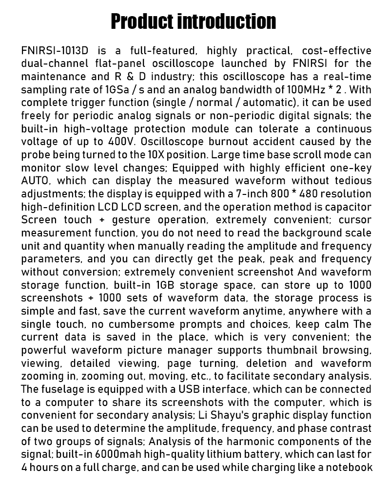 FNIRSI-1013D is a full-featured, highly practical, cost-effective dual-channel flat-panel oscilloscope launched by FNIRSI for the maintenance and R & D industry;