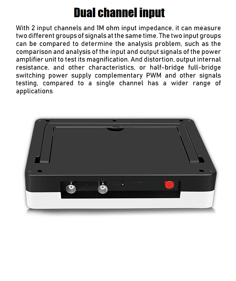 this oscilloscope has a real-time sampling rate of 1GSa / s and an analog bandwidth of 100MHz * 2 . With complete trigger function (single / normal / automatic), it can be used freely for periodic analog signals or non-periodic digital signals;