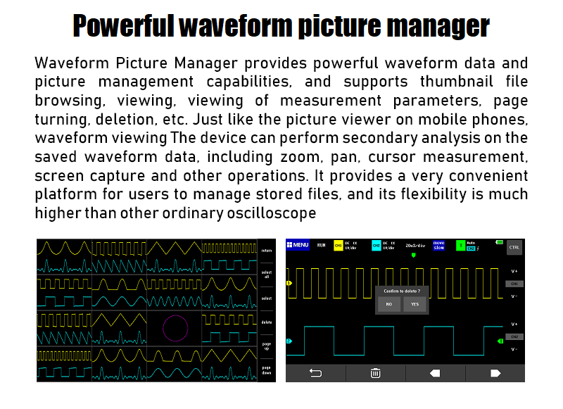 13.Powerful waveform picture manager supports thumbnail browsing, viewing, detailed viewing,