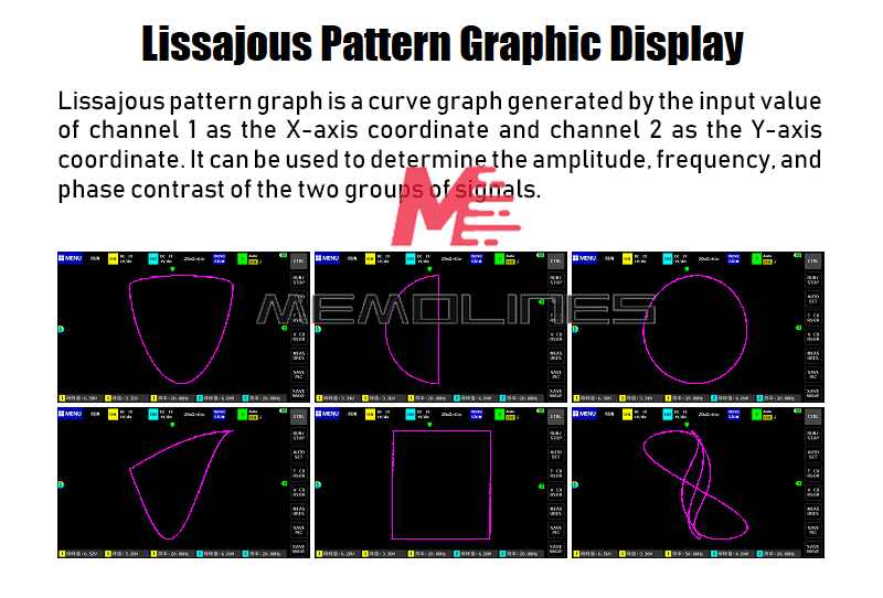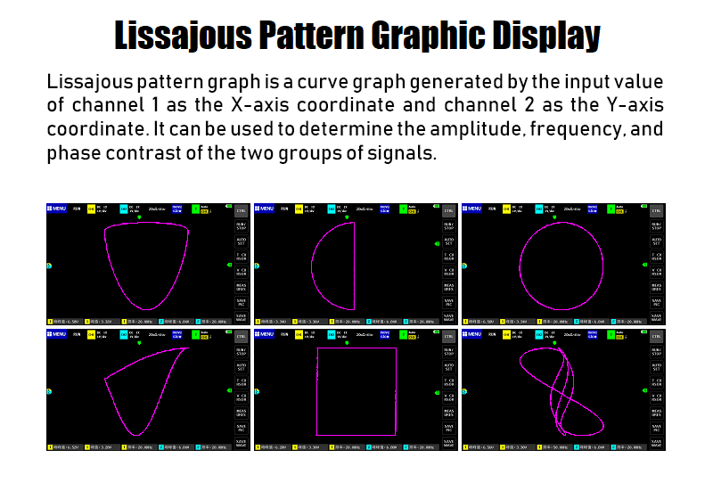Lissajous figures graphic display function can be used to determine the amplitude, frequency, and phase contrast of two groups of signals; Analysis of the harmonic components of the signal;
