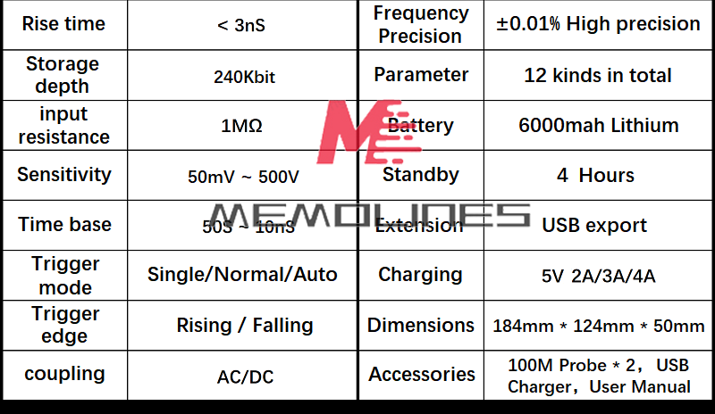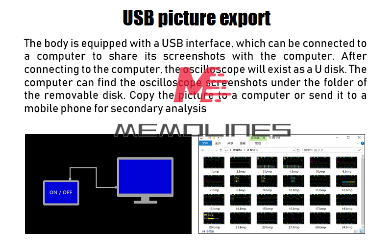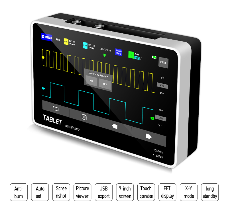 12.Built-in 1GB storage space, can store up to 1000 screenshots + 1000 sets of waveform data