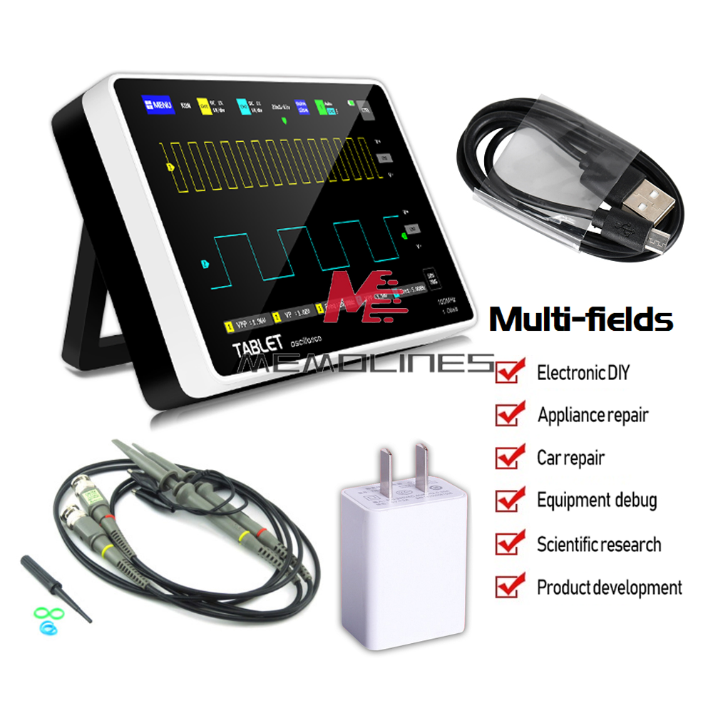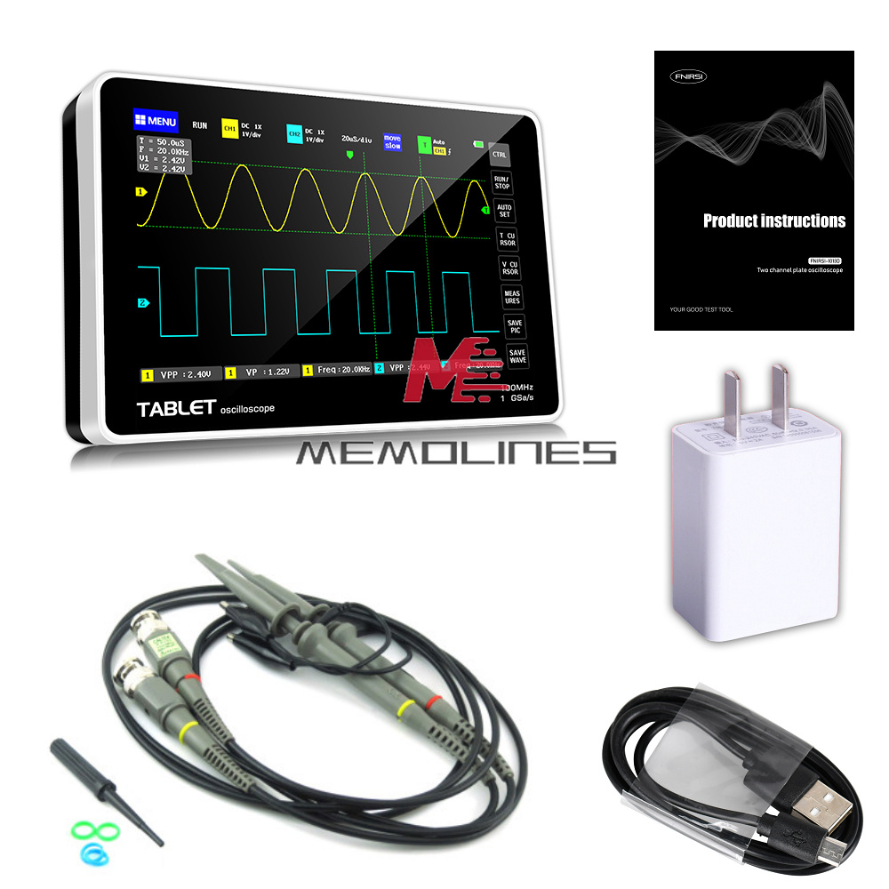 Package includes:1 x FNIRSI-1013D oscilloscope host2 x Matching 100MHz probe(1X and 10X)1 x 5V2A Charger(Include USB data line)1 x User manual (English)
