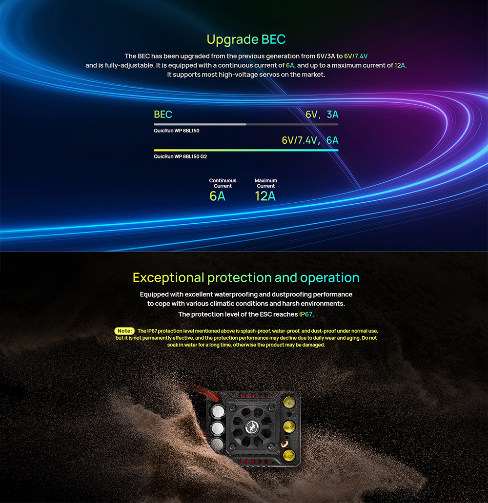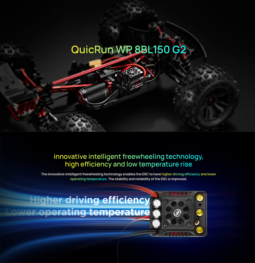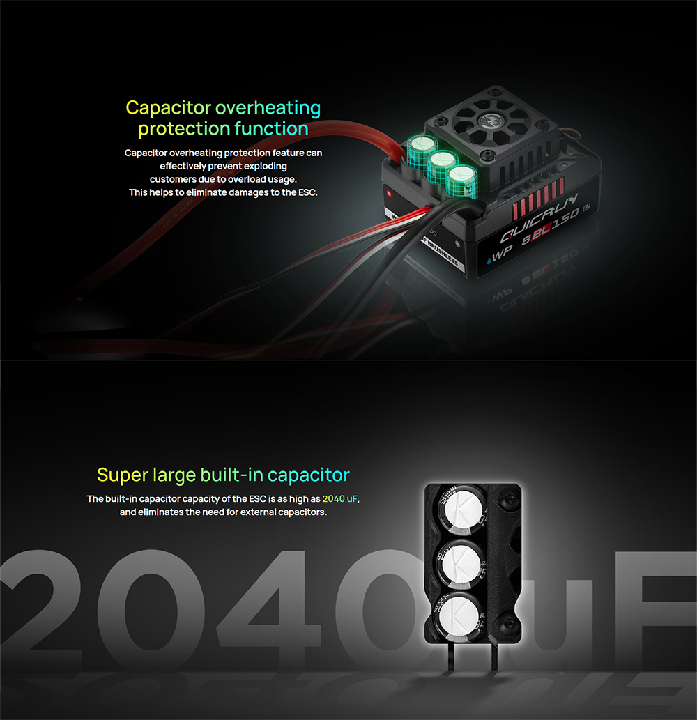 Quicrun 8BL150 G2 Brushless Sensorless,Built-in 2040uF eliminates the