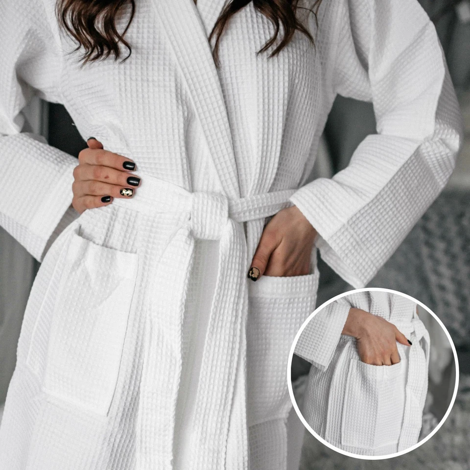Unisex Lightweight Waffle Bathrobe - Super Soft Spa Dressing Gown Kimono Robe
