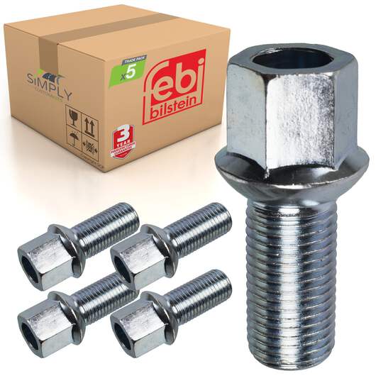 5x Alloy Steel Wheel Bolt Fits VW Golf Polo Fox Seat Ibiza Leon Febi 09801 - Fast & Free Delivery from Simply Car Parts - Brand New Genuine Febi Bilstein UK Stock - 3 Years Manufacturers Warranty