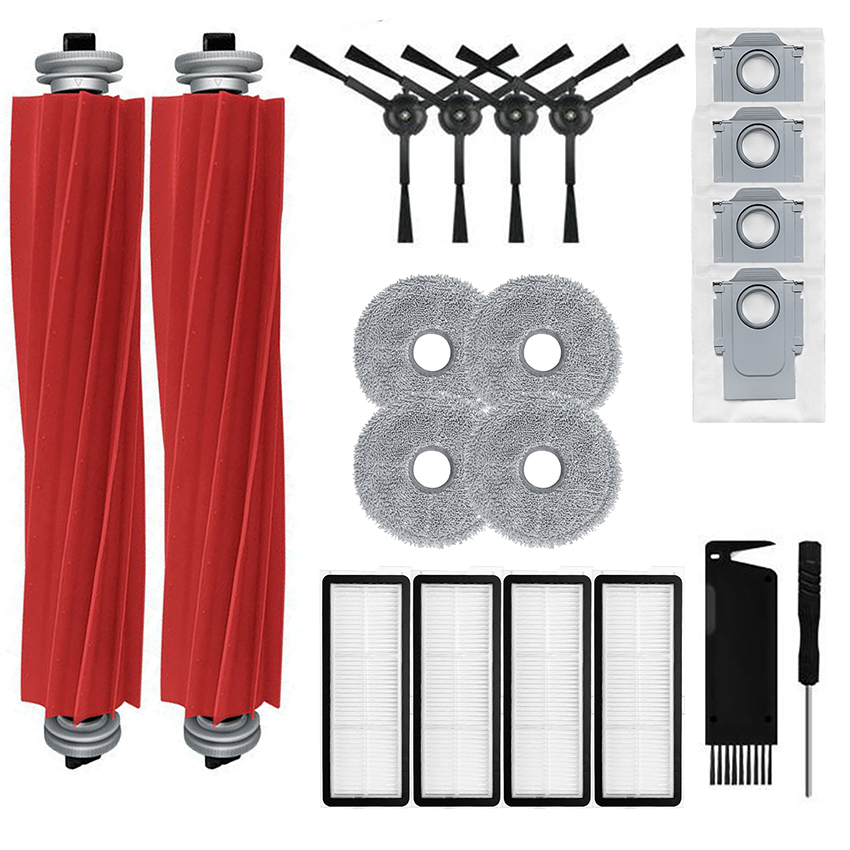 l 2x Main Brushes + 4x Black Side Brushes + 4x Mops + 4x Filters + 4x Dust Bags + 1x Cleaning Brush + 1x Screwdriver