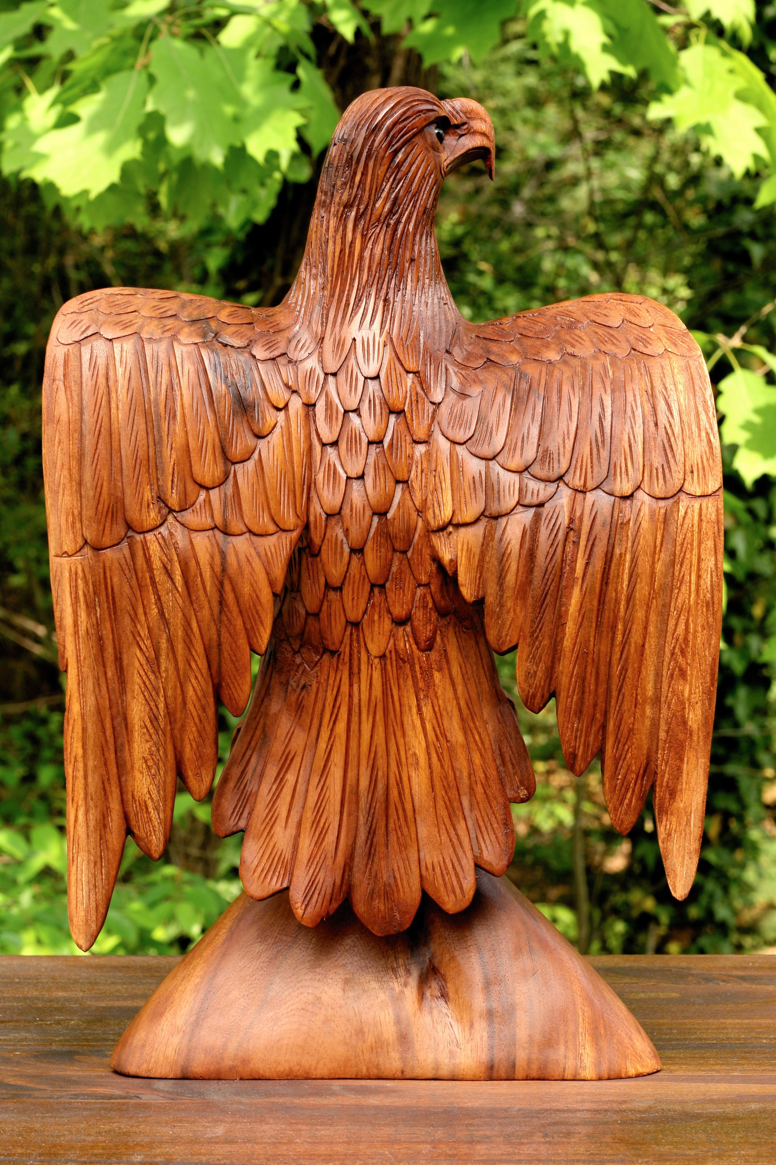 Celebrate the beauty of the majestic Eagle with this amazingly detailed, hand-carved statue. Crafted of solid Suar wood, this lovely eagle is richly colored with distinct features and a striking resemblance to the natural beauty of the actual bird. This amazing statue looks fabulous displayed in any room of your home on a mantle, shelf or table and is the perfect gift for bird enthusiasts.