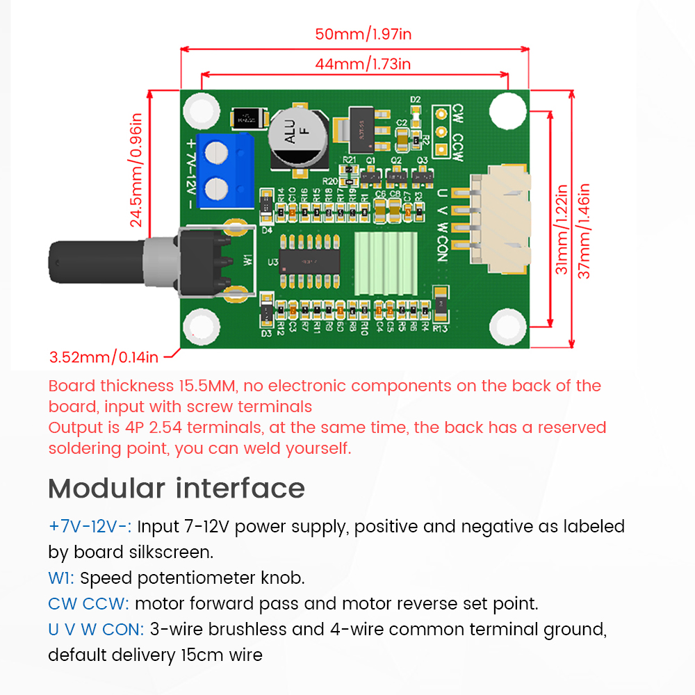 1. After the short circuit overcurrent protection of the brushless driver board, the power indicator light turns off. At this time, the power supply to the driver board should be cut off. After dealing with the cause of the overcurrent, the power supply to the driver board can be restored. Once the LED power indicator light is on, it can work normally. 2. The higher the power used by the module, the closer the current is to the maximum current. The heat will increase, please pay attention to heat dissipation when using