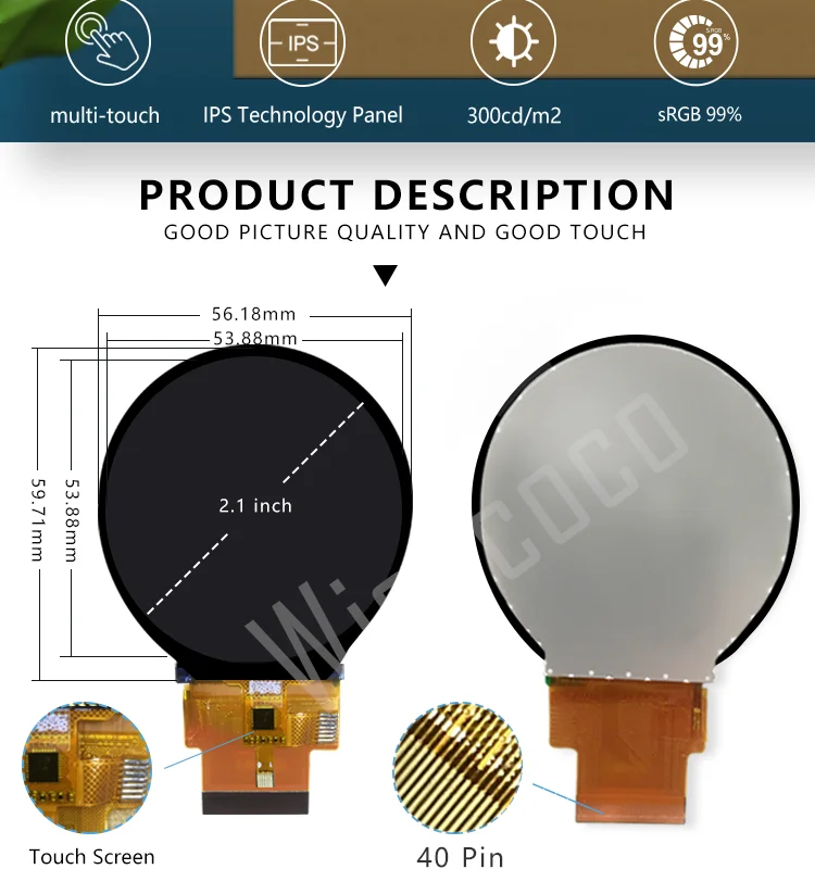 Wisecoco 2 Inch 480X480 Round Circle IPS LCD Screen With Capacitive Touch Panel HDMI DIY KIT Micro Circular Display Packing : touch/no touch kit (optional)