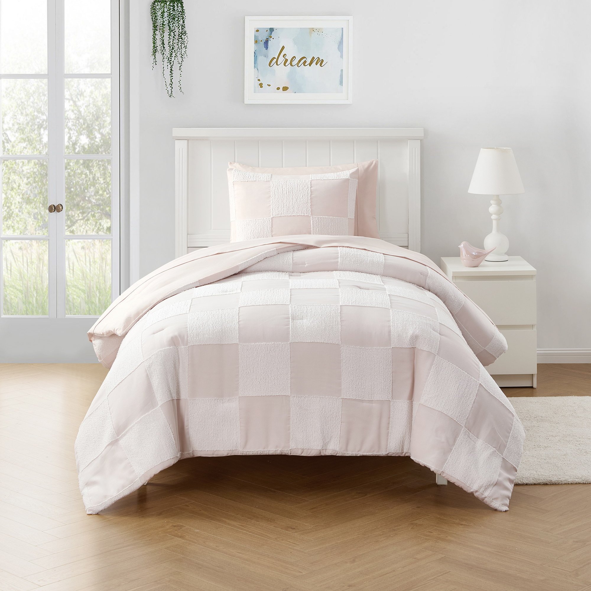 - Complete set includes a comforter, matching pillow shams, and a coordinating solid sheet set.