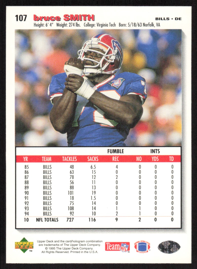 1995 Upper Deck Collector's Choice Bruce Smith #107 Buffalo Bills