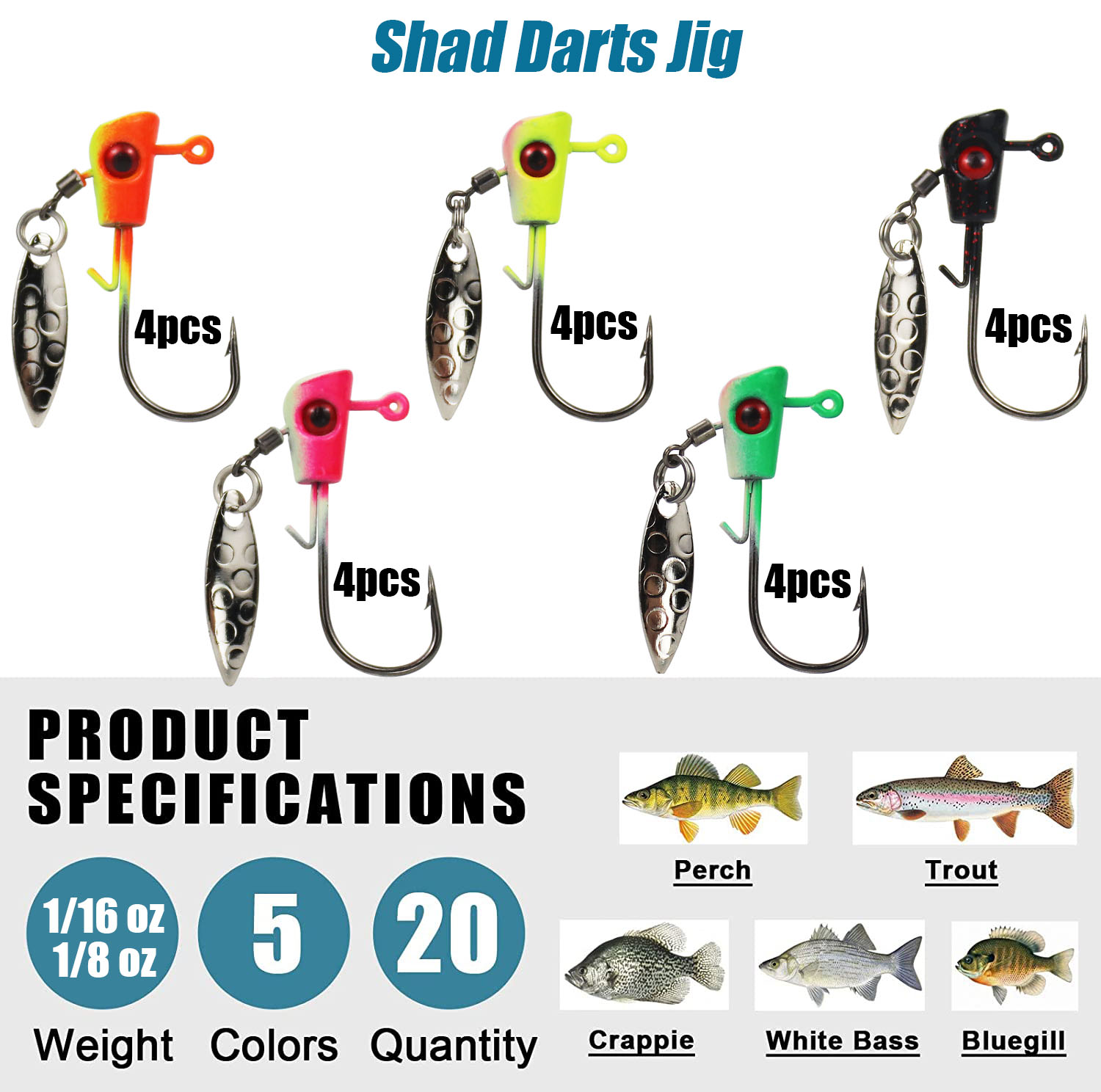 【EASY TO USE】The jig heads with spinner are easier to rig and can keep the plastic lures stay on very well.Round head jig widely used in freshwater and saltwater.Both beginners and experienced anglers can use it to catch different fish,perfect for crappie, bluegill,trout,white bass,perch,walleye fishing.