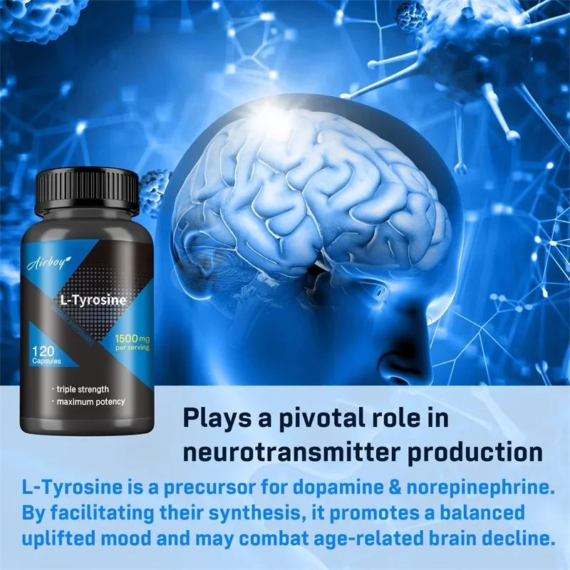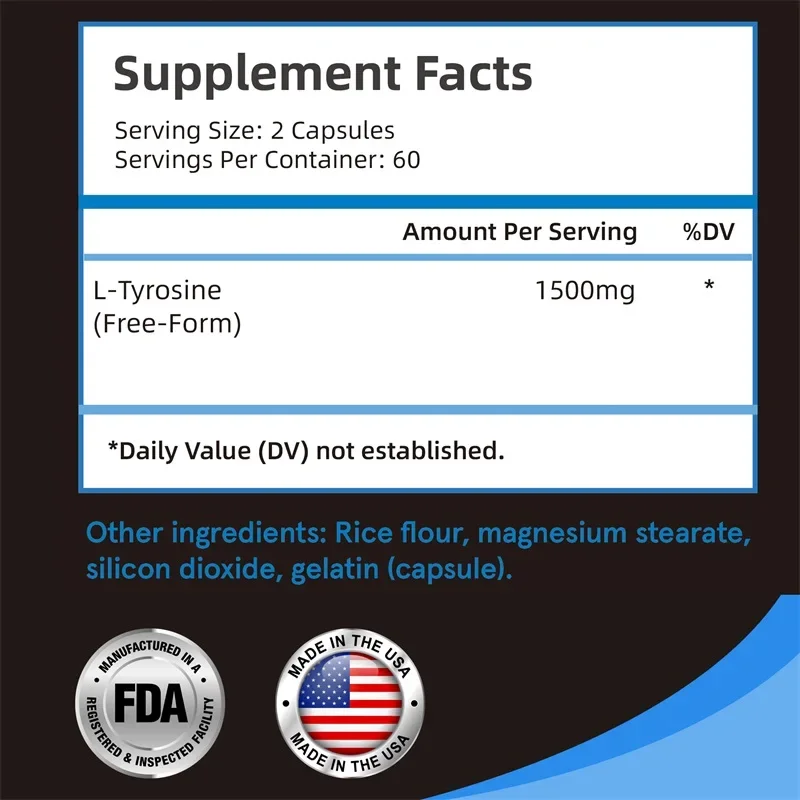 L-tyrosine is an amino acid used by the body to produce neurotransmitters, which help support cognitive function, memory and mood.