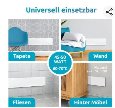 Nennleistung je Heizelement: 45-55 Watt.