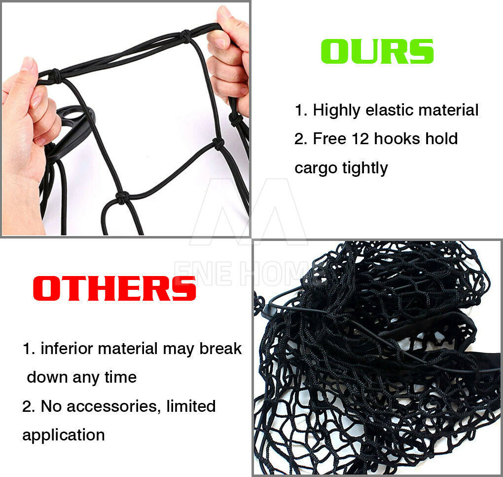 Features: *5. Elastic rope twisted twine. *6. Lexible and elastic. Sizes: 120x90cm 1 PC Car Luggage Carrier Net