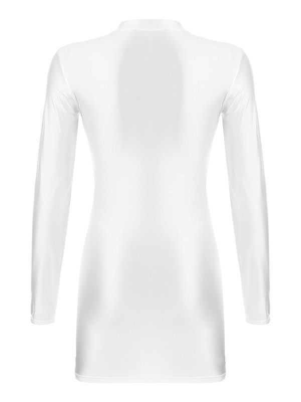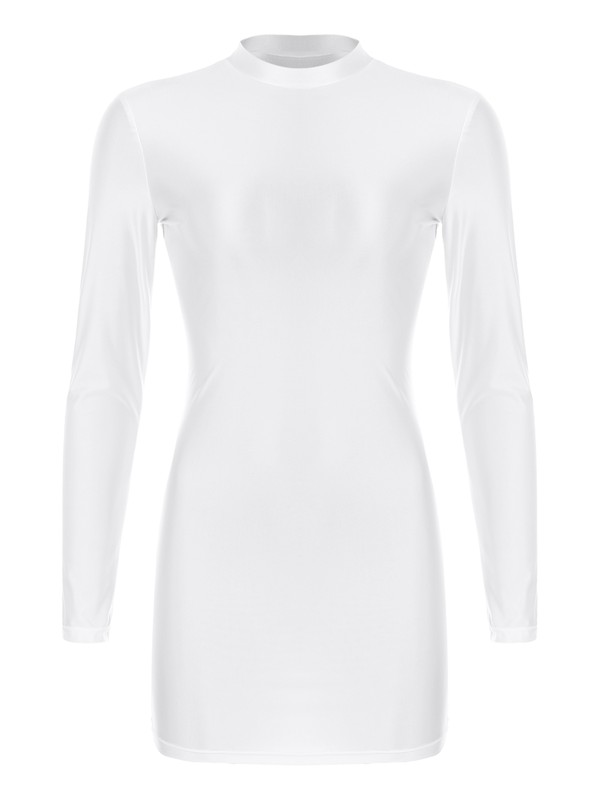 Langärmliges, figurbetontes Kleid für Damen, Stehkragen, einfarbig, Zugverschluss.