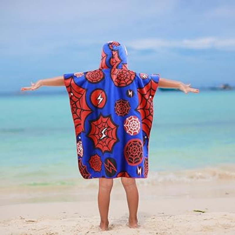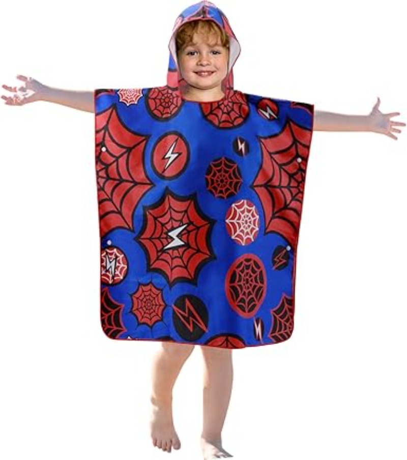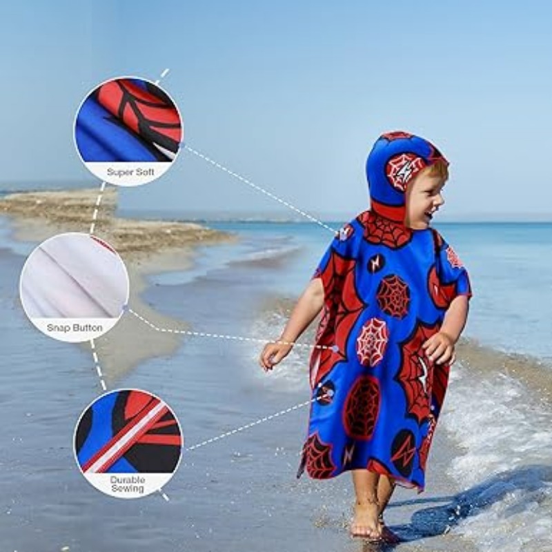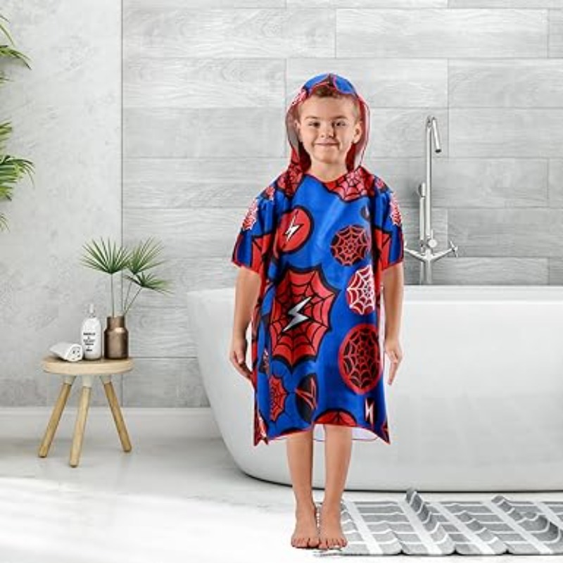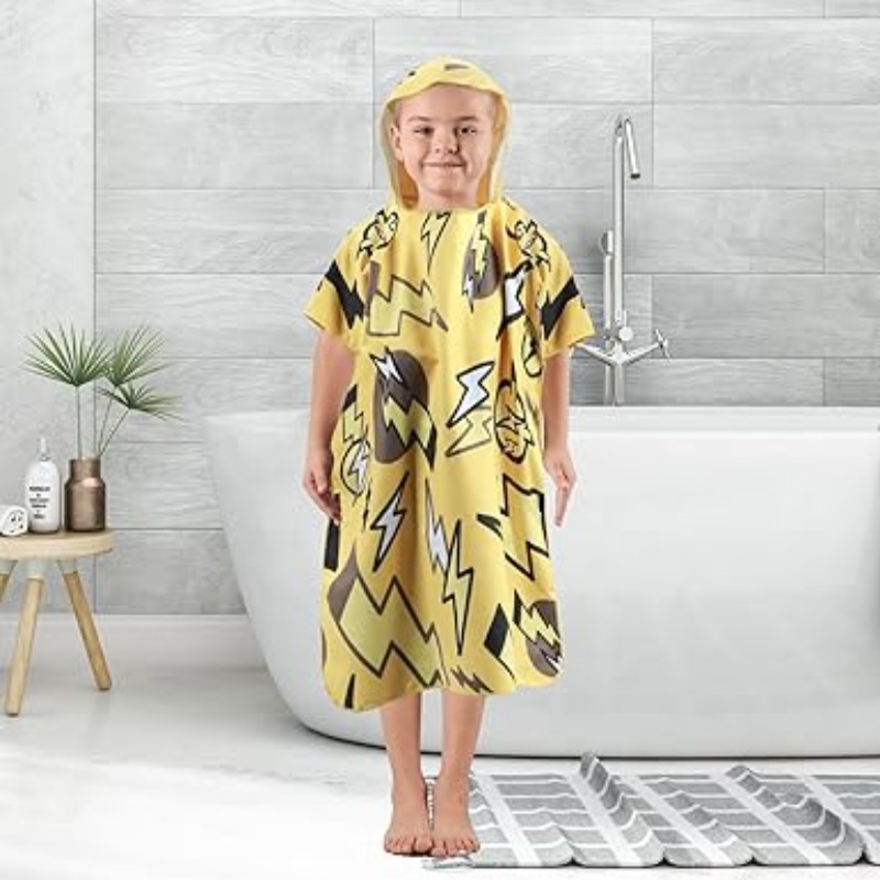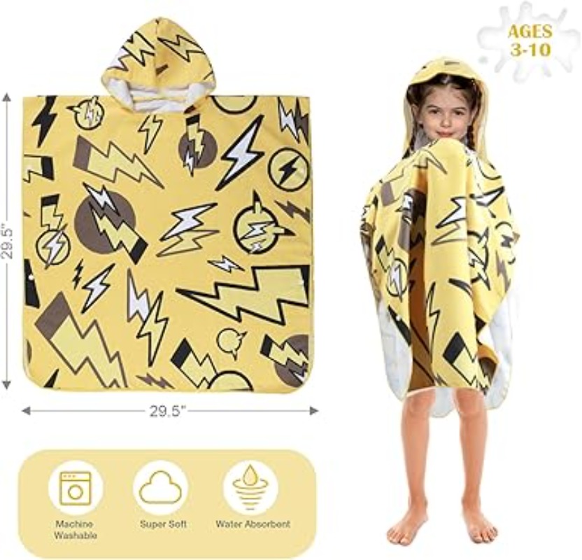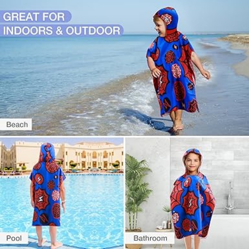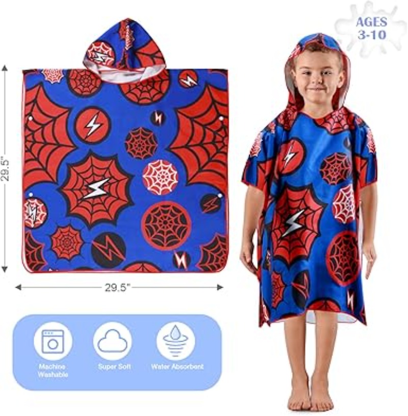 Kids Beach Poncho with Hood for Boys & Girls Age 3-10, Microfiber Changing Robe Pool Bath Poncho for Swimming Surfing