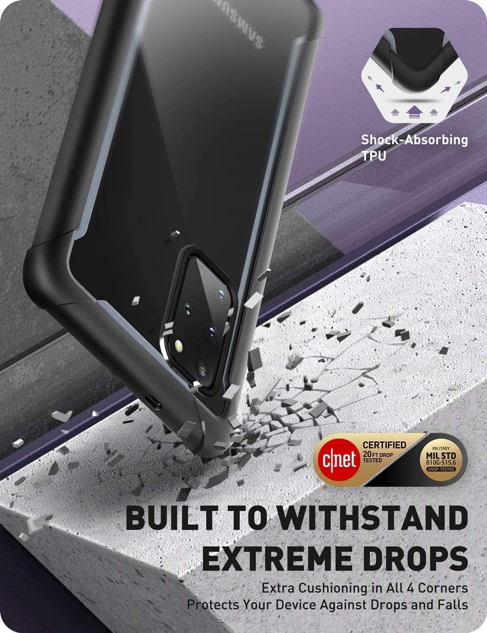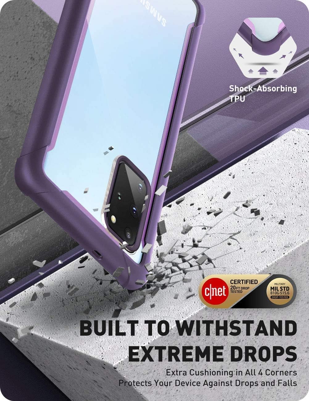 Clear back casing provides protection with shock-absorbent TPU bumpers and scratch-resistant polycarbonate materials highlight your phone's signature look.(CNET certified and drop tested at 20 feet)