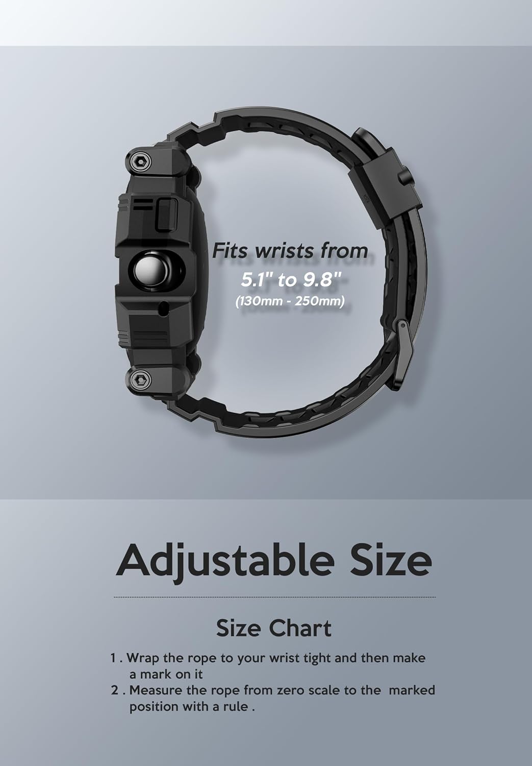 [Fits Most Wrists] Fully-adjustable and comfortable wristband fits 5.1'' to 9.8'' (130mm - 250mm) wrists.