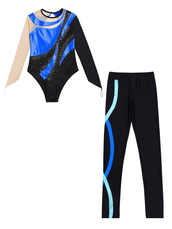 Mädchen Turnanzug Langarm Strass Gymnastik Trikot und Leggings Tanzbekleidung