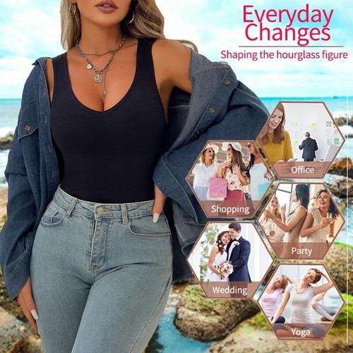 Elegant Wide Strap V-Neck Design:Featuring a stylish V-neck and wide shoulder straps, this shapewear adds a touch of allure to any outfit. It's versatile enough for various occasions, whether you're dressing up or down.