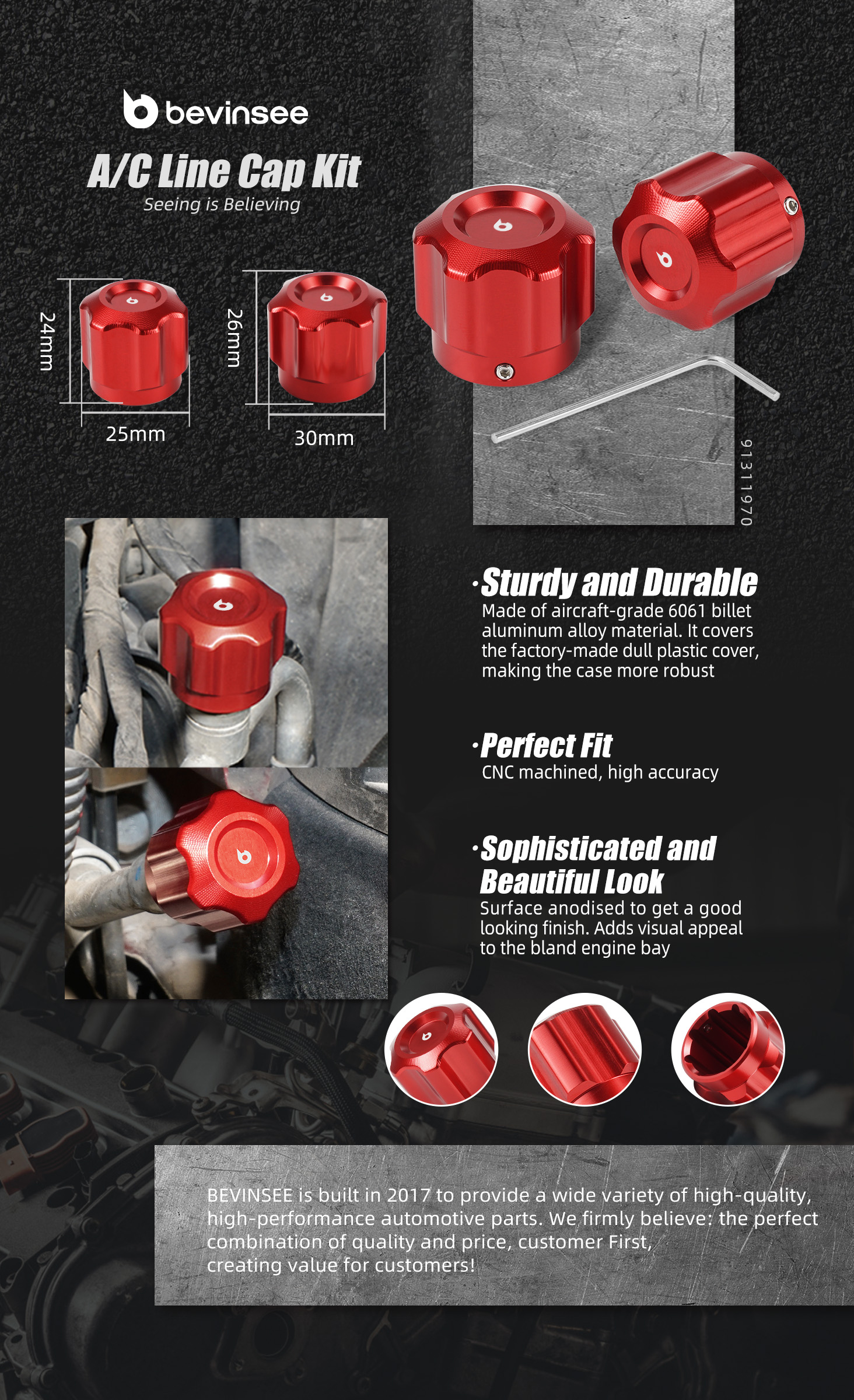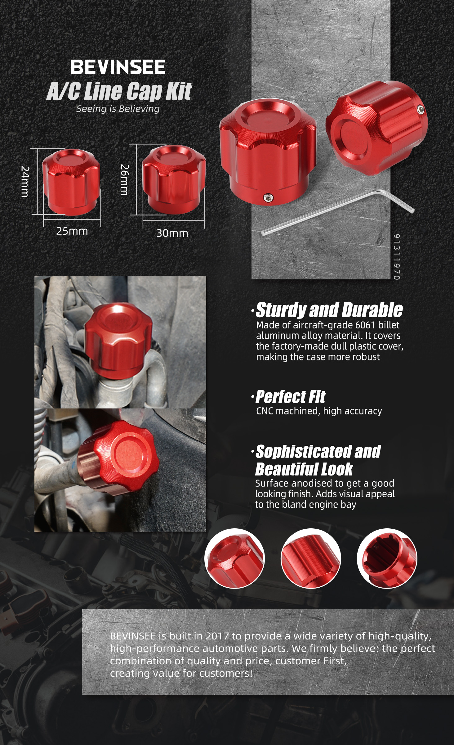 【Sophisticated and Beautiful Look】Surface anodised to get a good looking finish. Adds visual appeal to the bland engine bay.