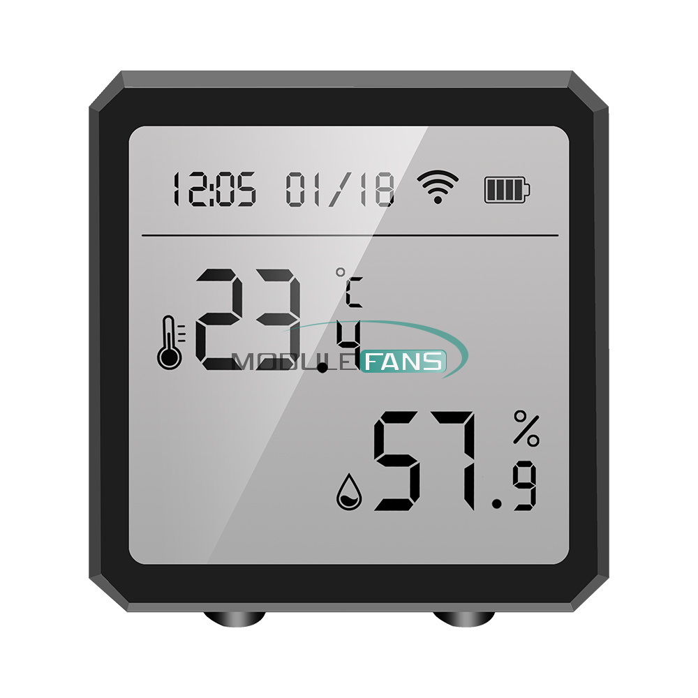 The sensor uses an LCD as the temperature and humidity display, with the addition of a time and date display on the screen. The time and date are automatically calibrated.