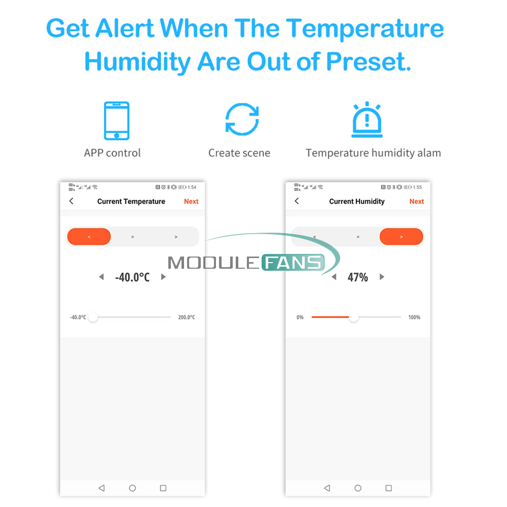 Once the set humidity value is exceeded, the phone will prompt an alarm