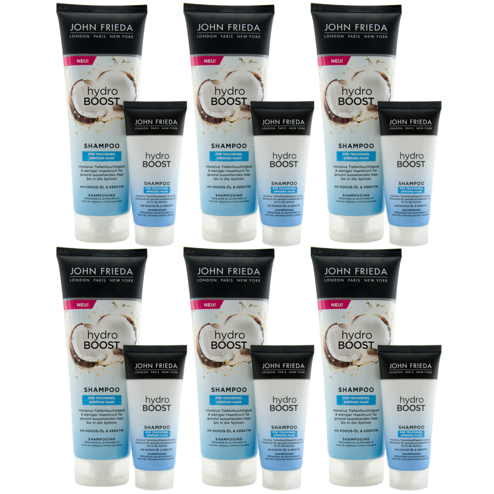 John Frieda hydro Boost Shampoo 6 x 250ml + 6 x 50ml für trockenes, sprödes Haar