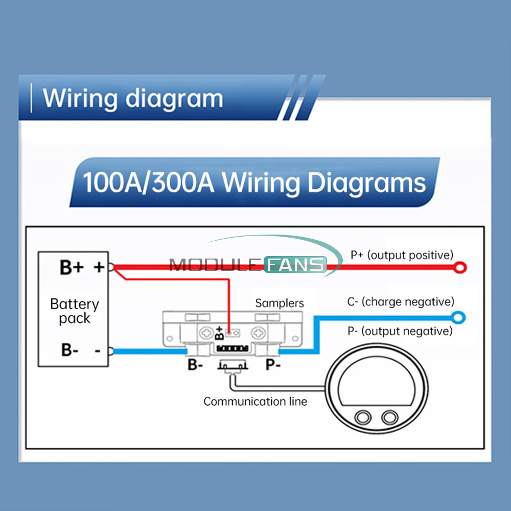 1. First connect the sampler in series to the circuit of the negative terminal of the battery pack. The B-terminal of the sampler is connected to the negative terminal of the battery B-, and the P-terminal is connected to the negative terminal of the charging and discharging P-C.
