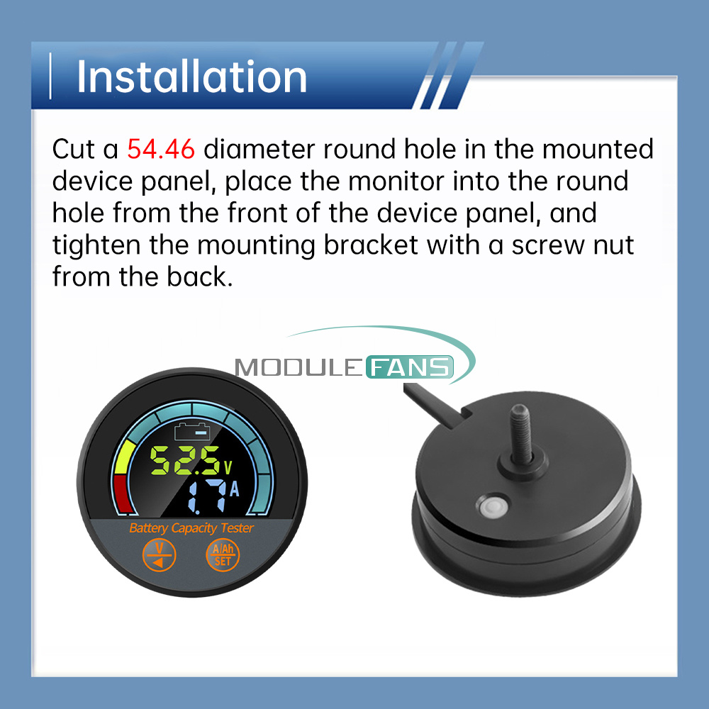 Open a 54.46 diameter round hole on the panel of the device to be installed, put the monitor into the round hole from the front of the device panel.