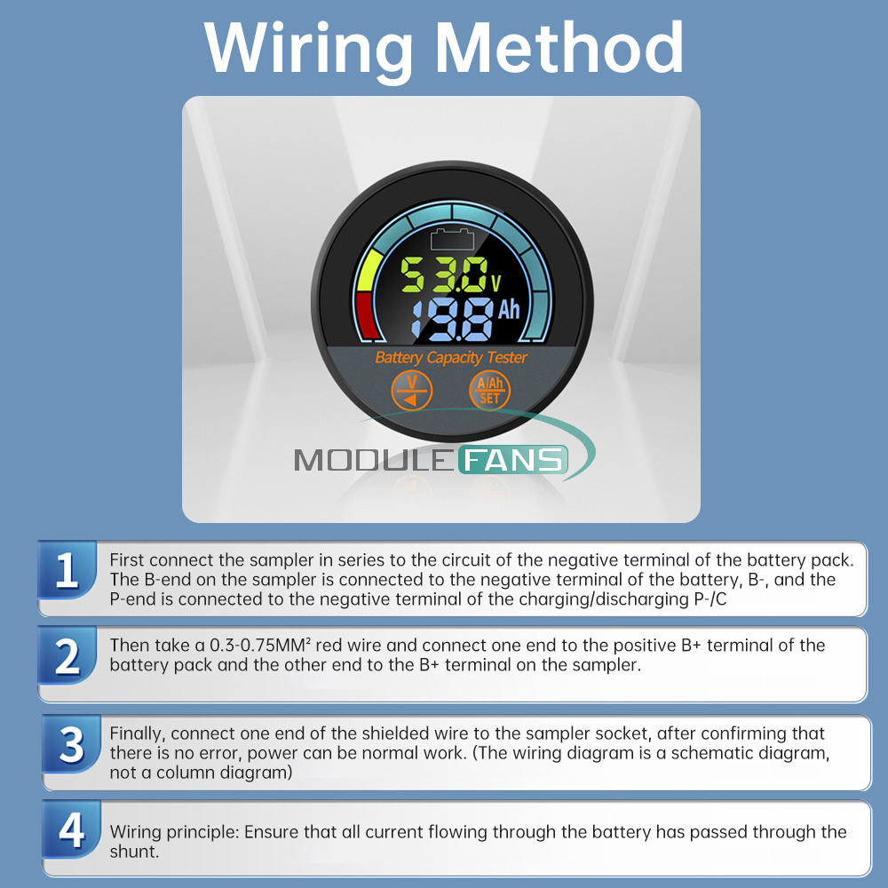 4. Wiring principle: to ensure that all the current flowing through the battery has passed through the shunt.